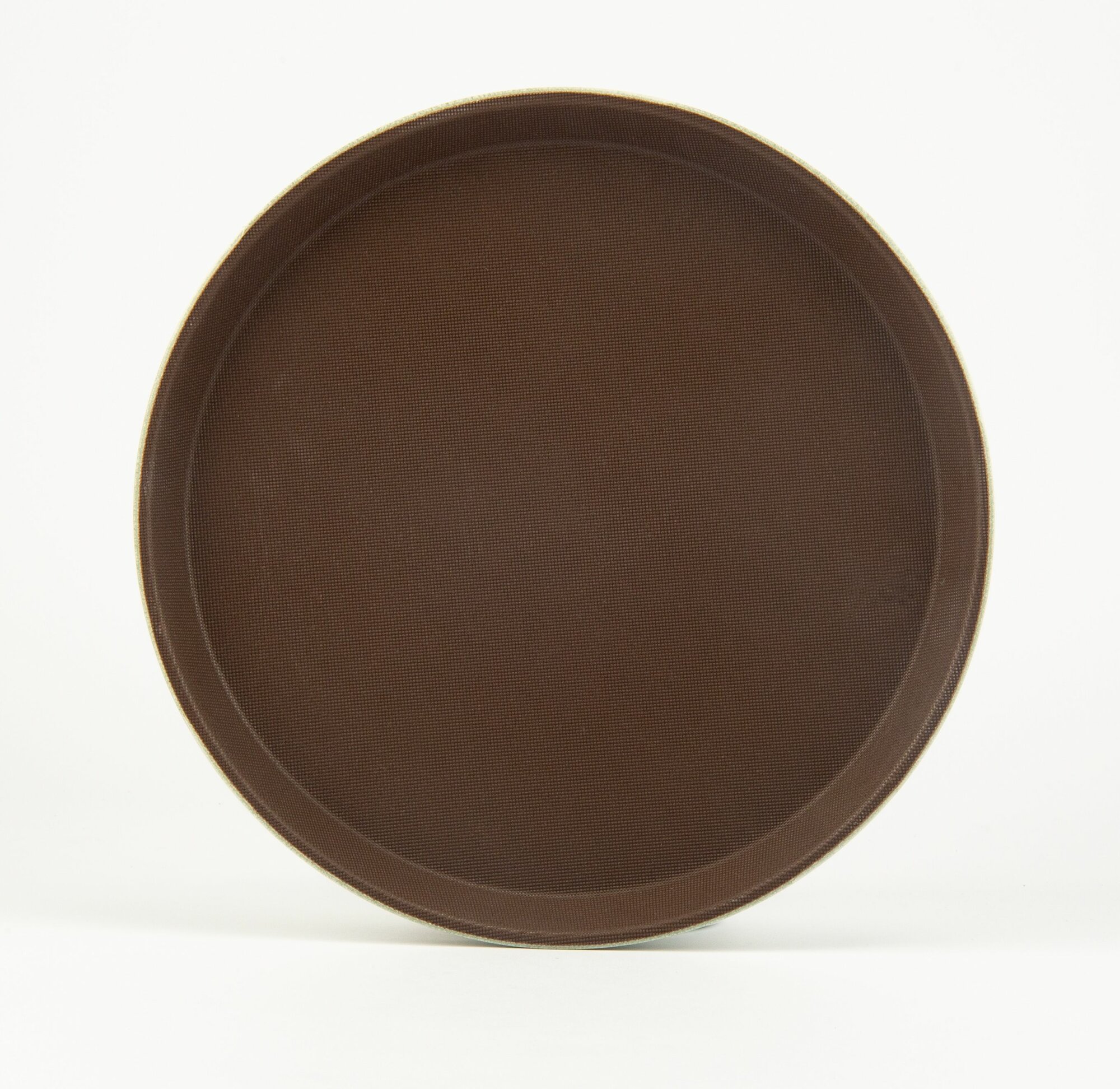 Купить Поднос пластмассовый, круглый, прорезиненное покрытие d 28см, коричневый