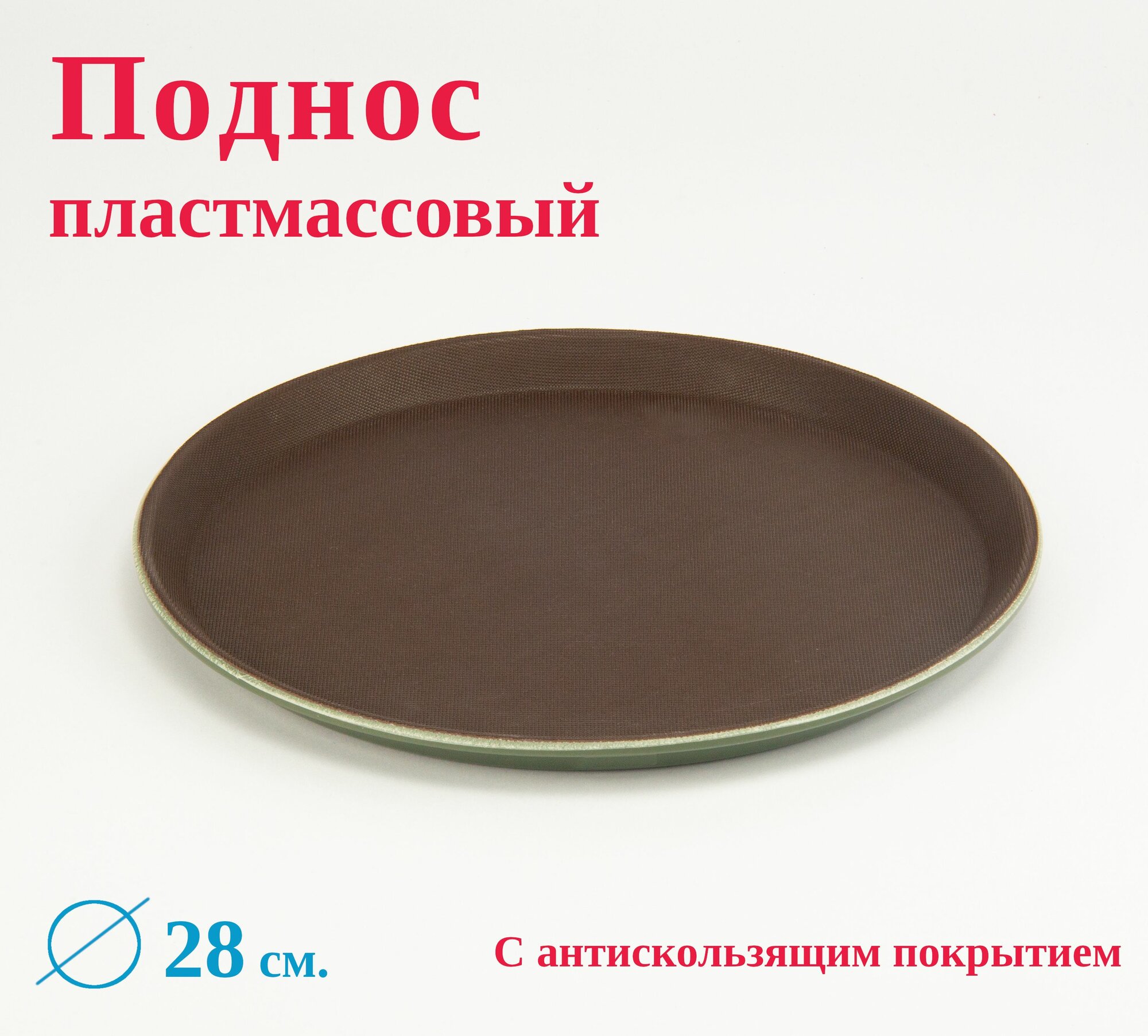 Поднос пластмассовый, круглый, прорезиненное покрытие d 28см, коричневый интересное: