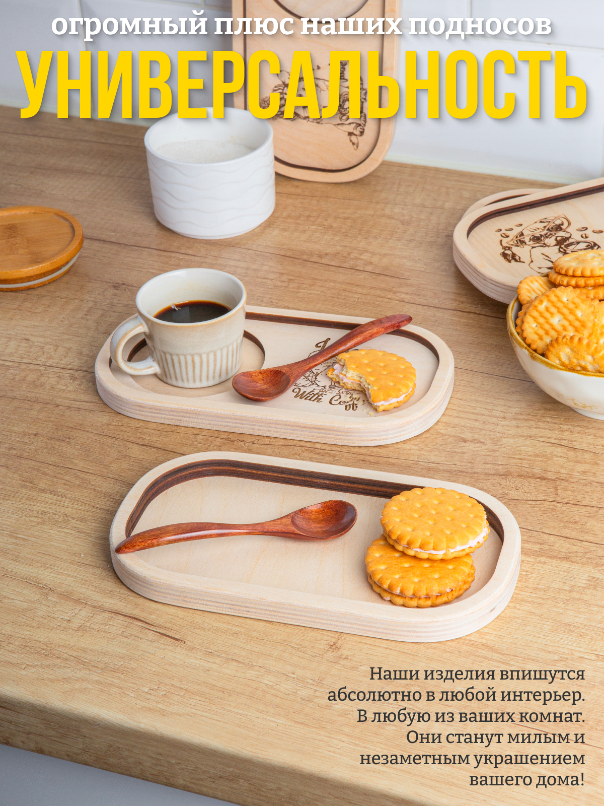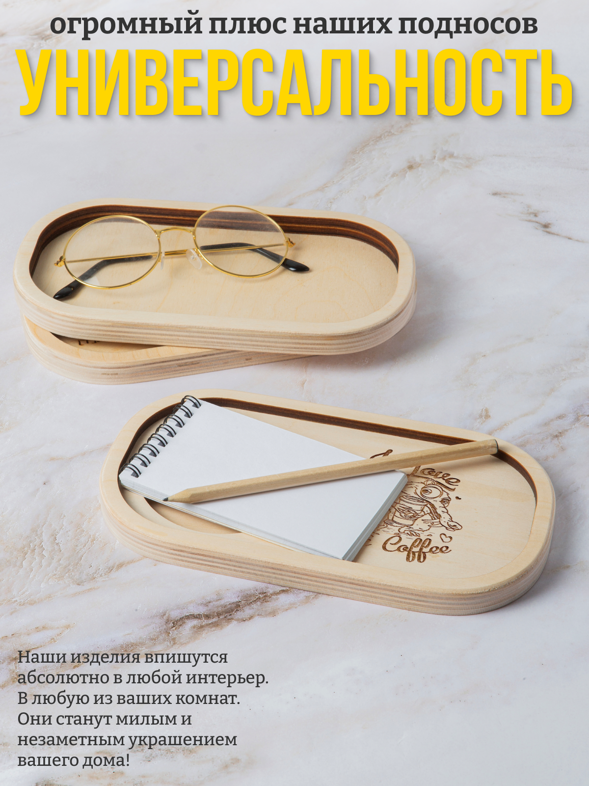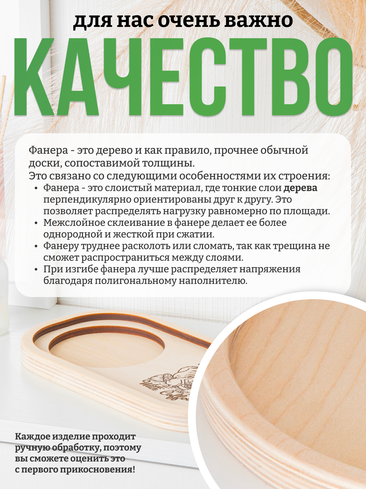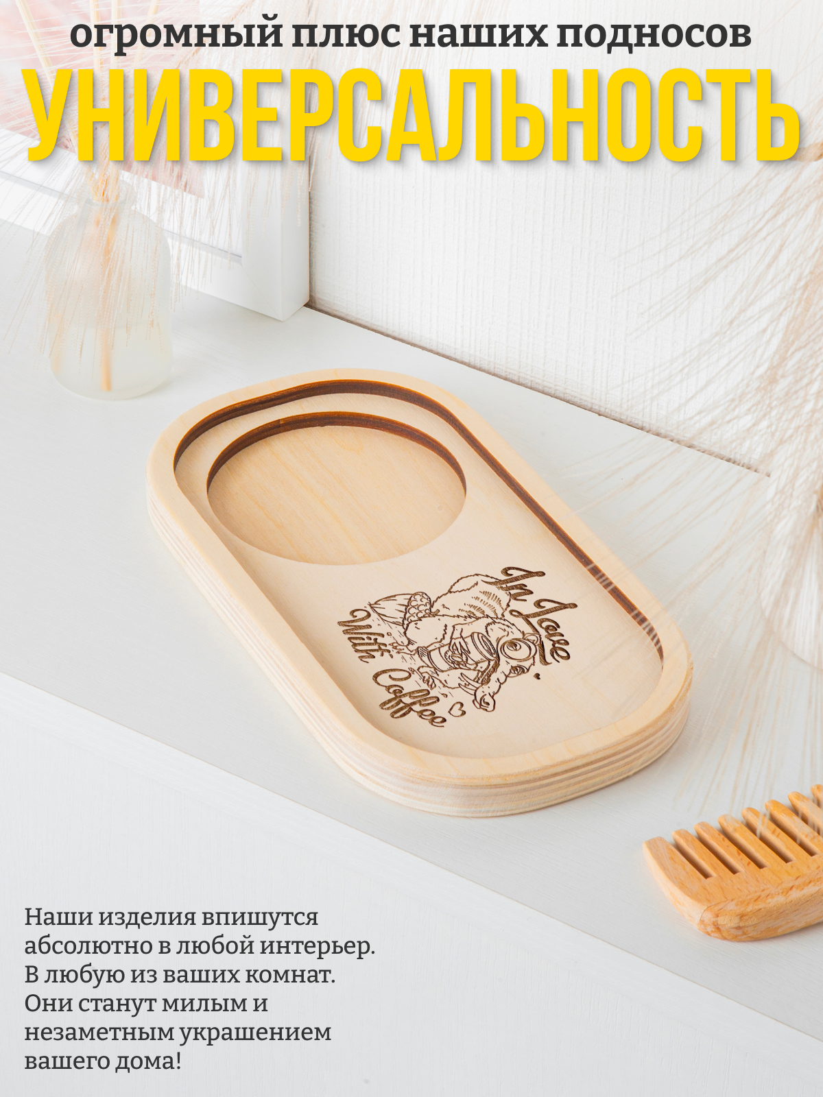 "Stay you - stay true" - деревянный маленький поднос 22 х 12 см для кружки