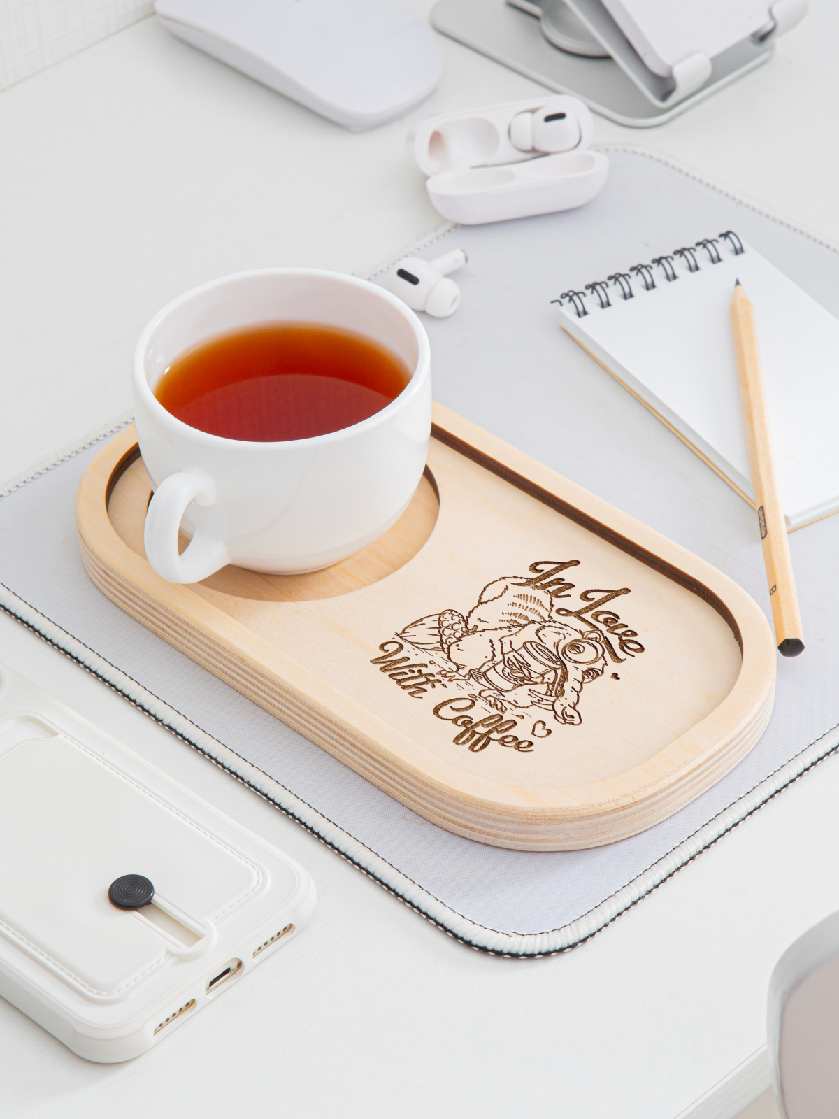 Купить "In love with coffee" - деревянный маленький поднос 22 х 12 см для кружки