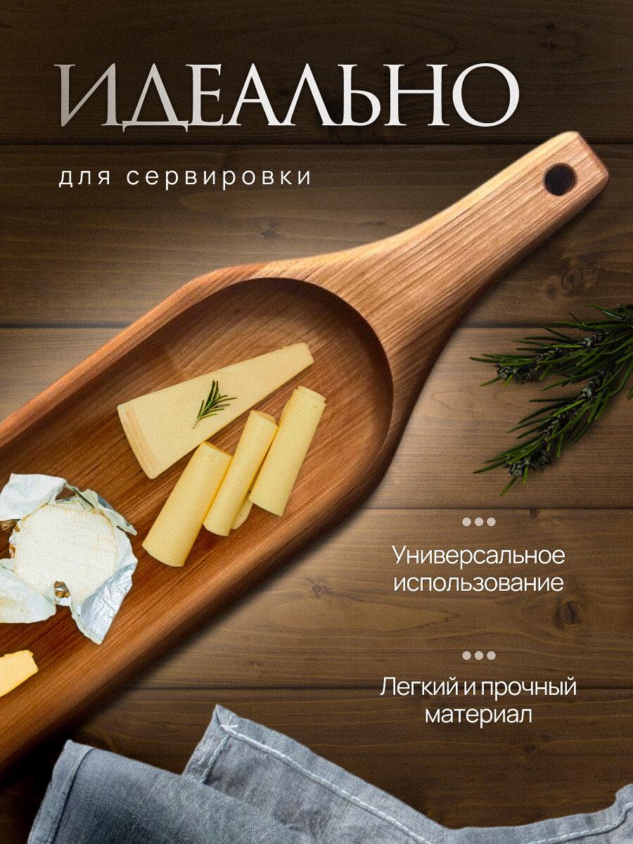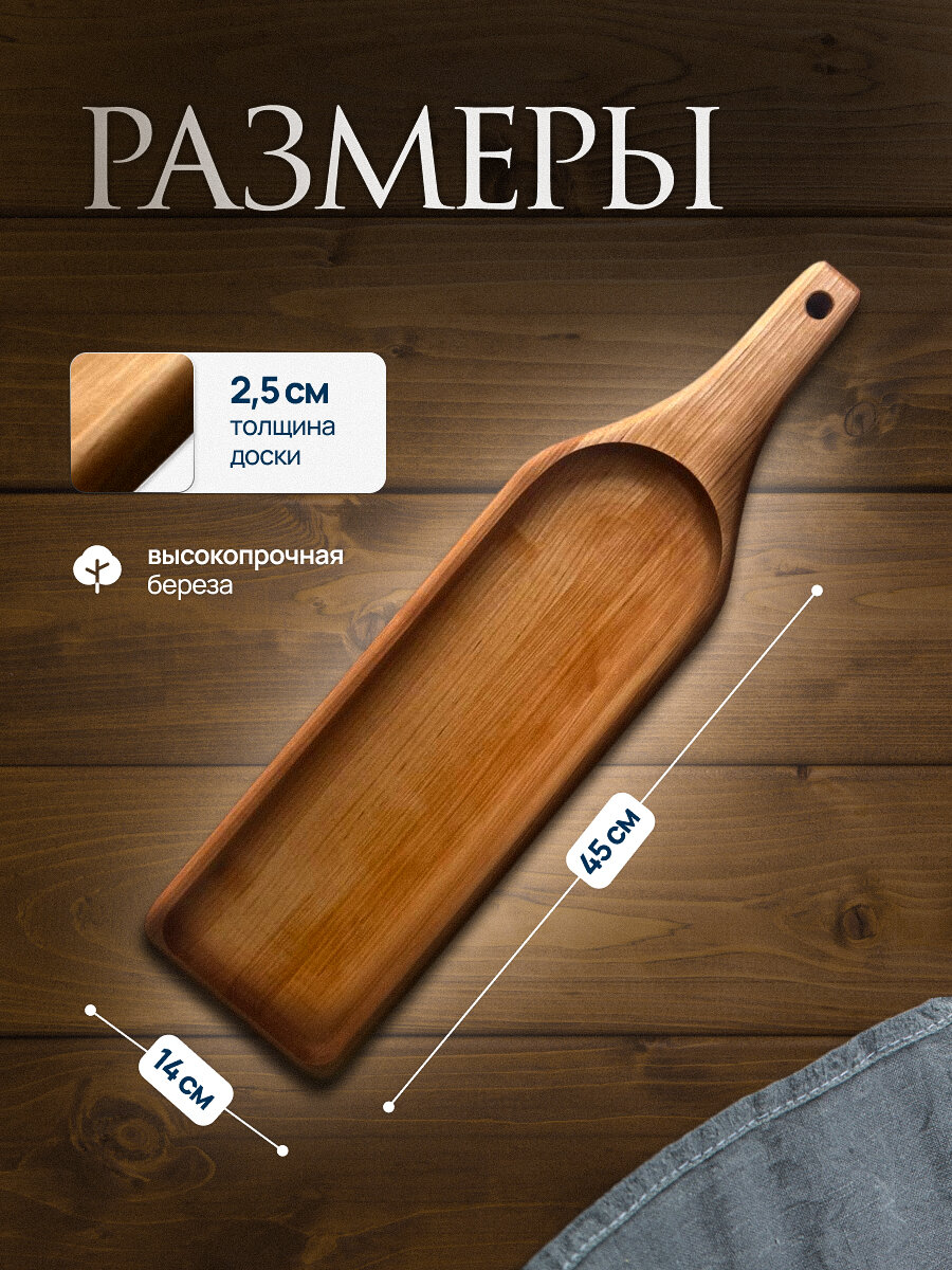 Доска сервировочная деревянная для подачи мяса и закусок, береза, 45x12см, светло-желтая интересное: