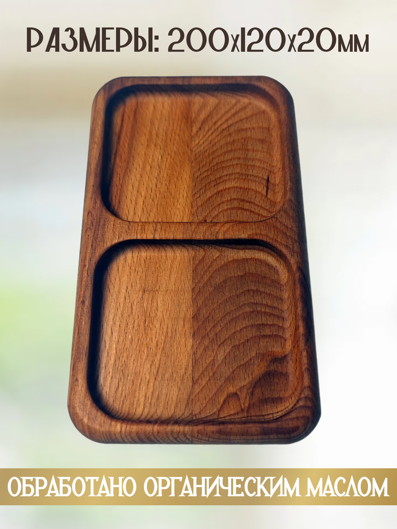 Сервировочная доска MZR, менажница деревянная, покрытие пищевое масло 20х12х2 см, бежевая, для подачи закусок, эко интересное: