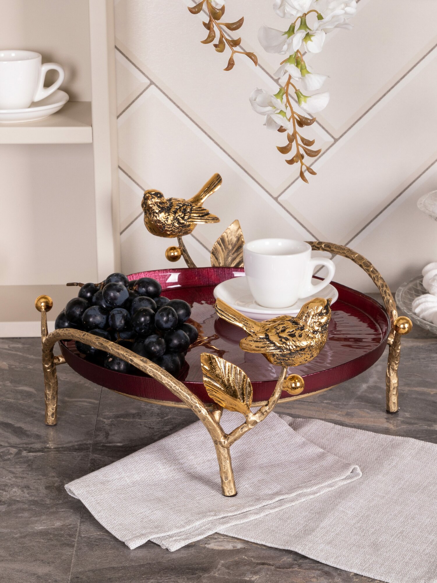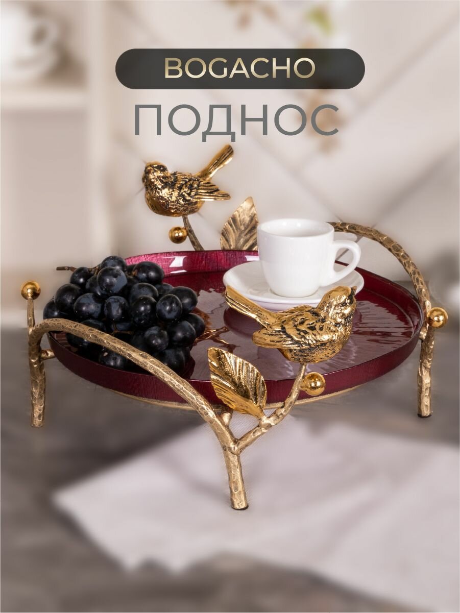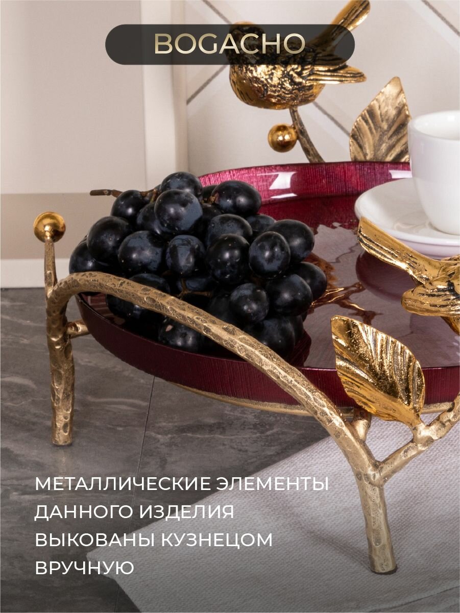 Купить Круглый поднос фруктовница Bogacho Терра на ножках с ручками для подачи фруктов, конфет и сладостей, чая и кофе