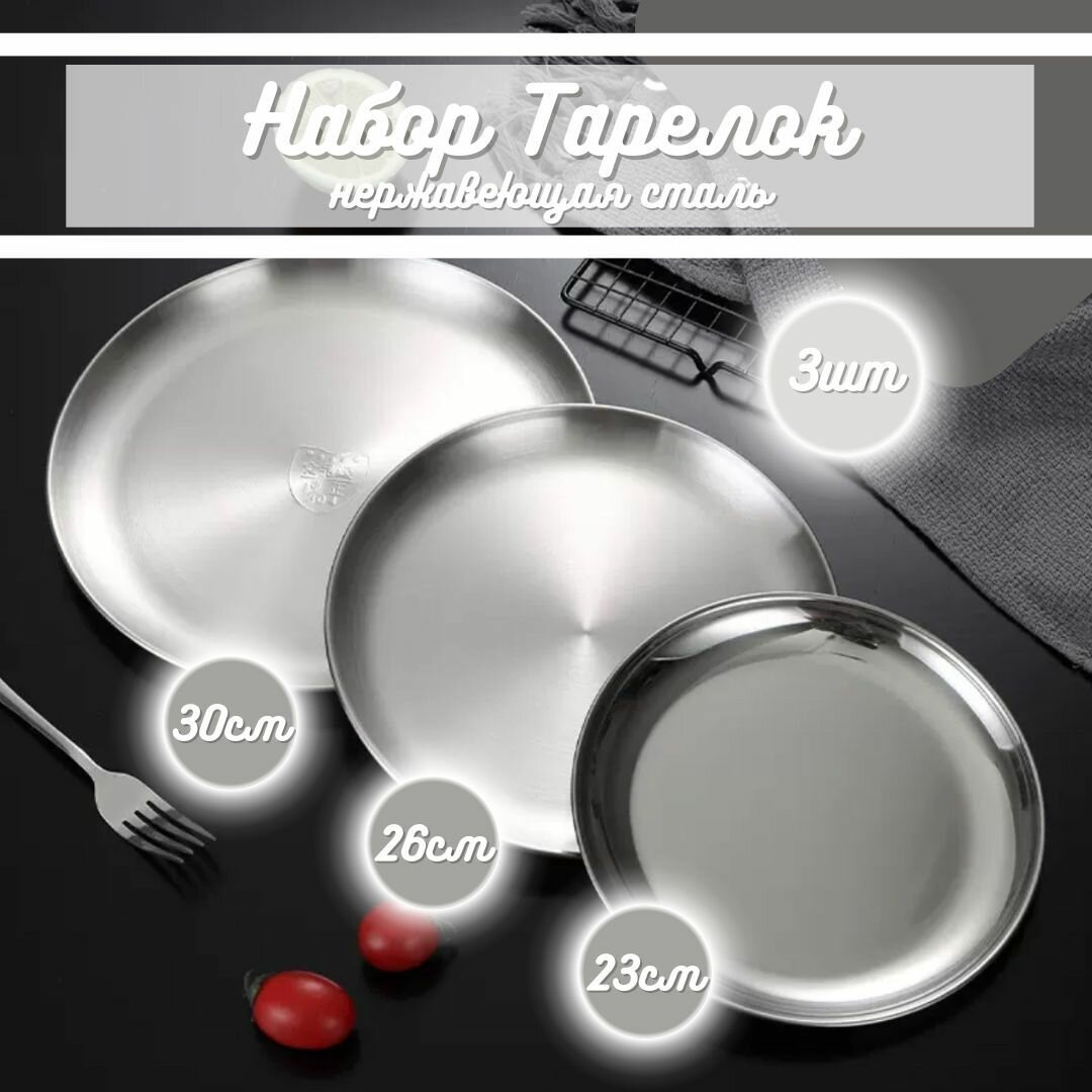 Поднос металлический круглый 23 см х 26 см х30, 3шт интересное: