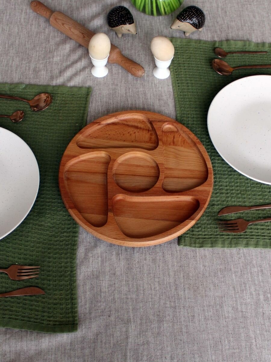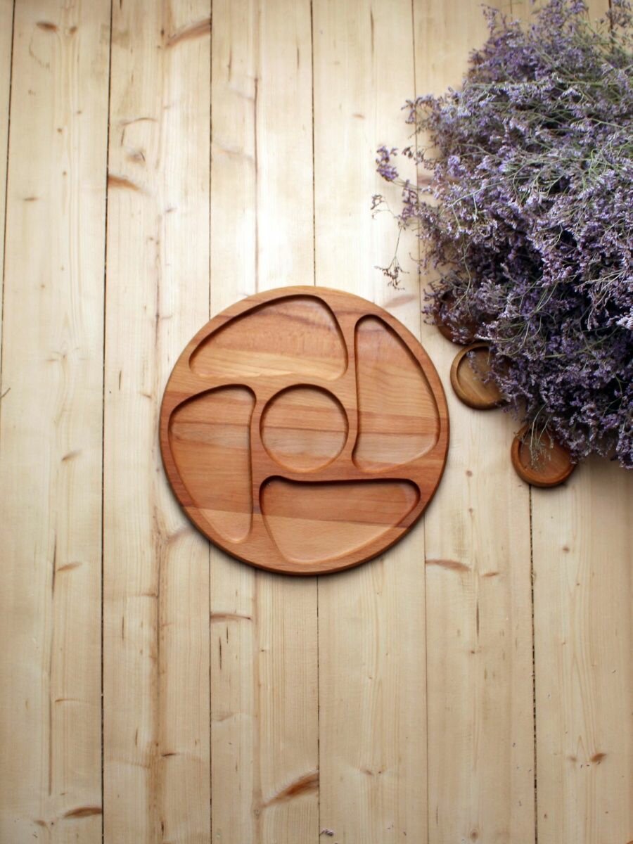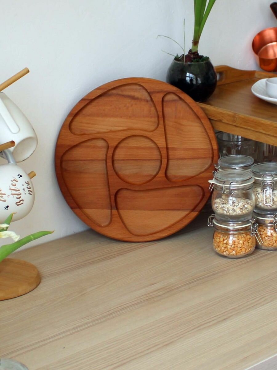 Сервировочная доска MZR, менажница, дерево бук, диаметр 25см, цвет бежевый интересное: