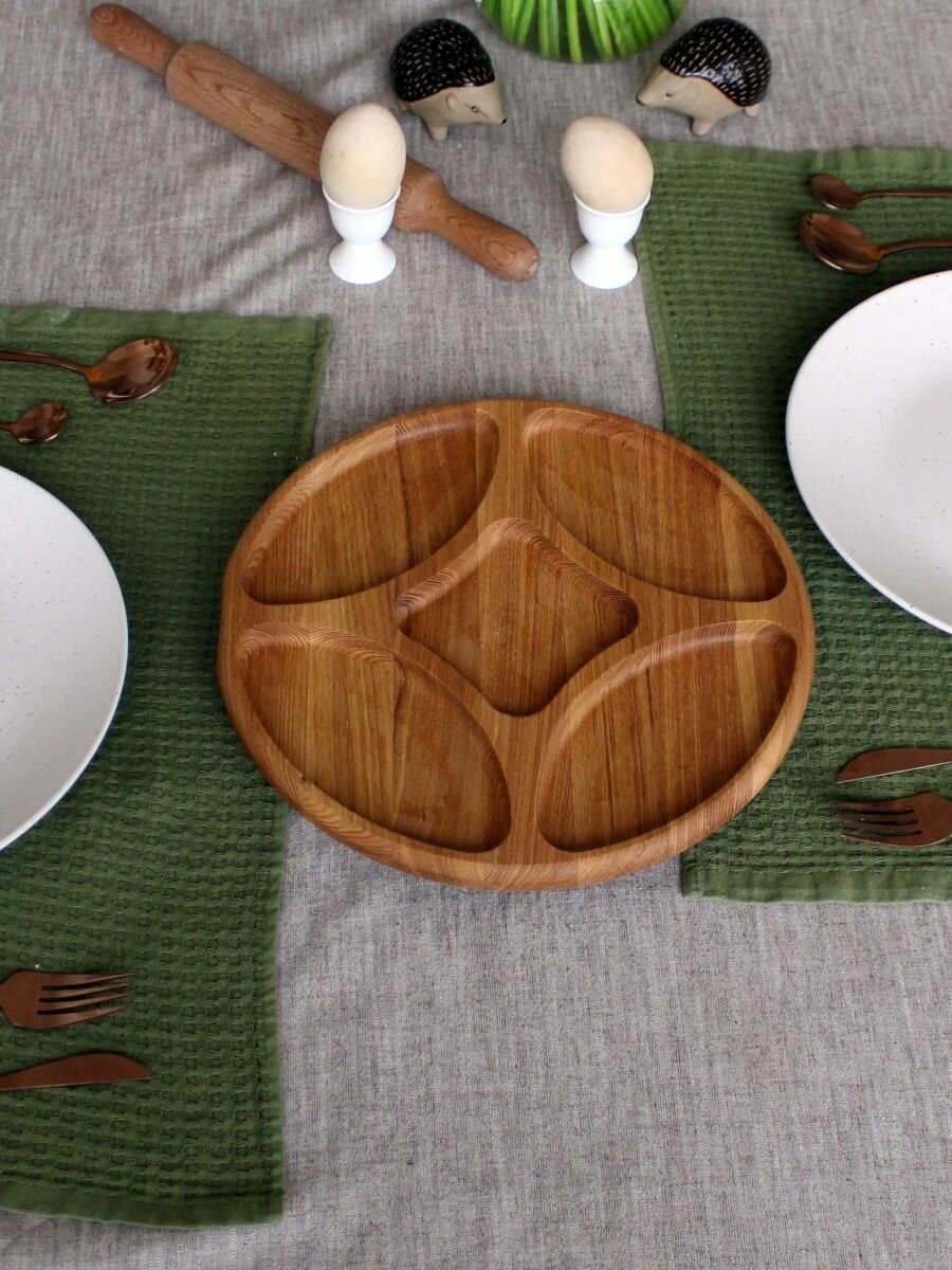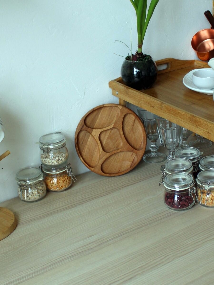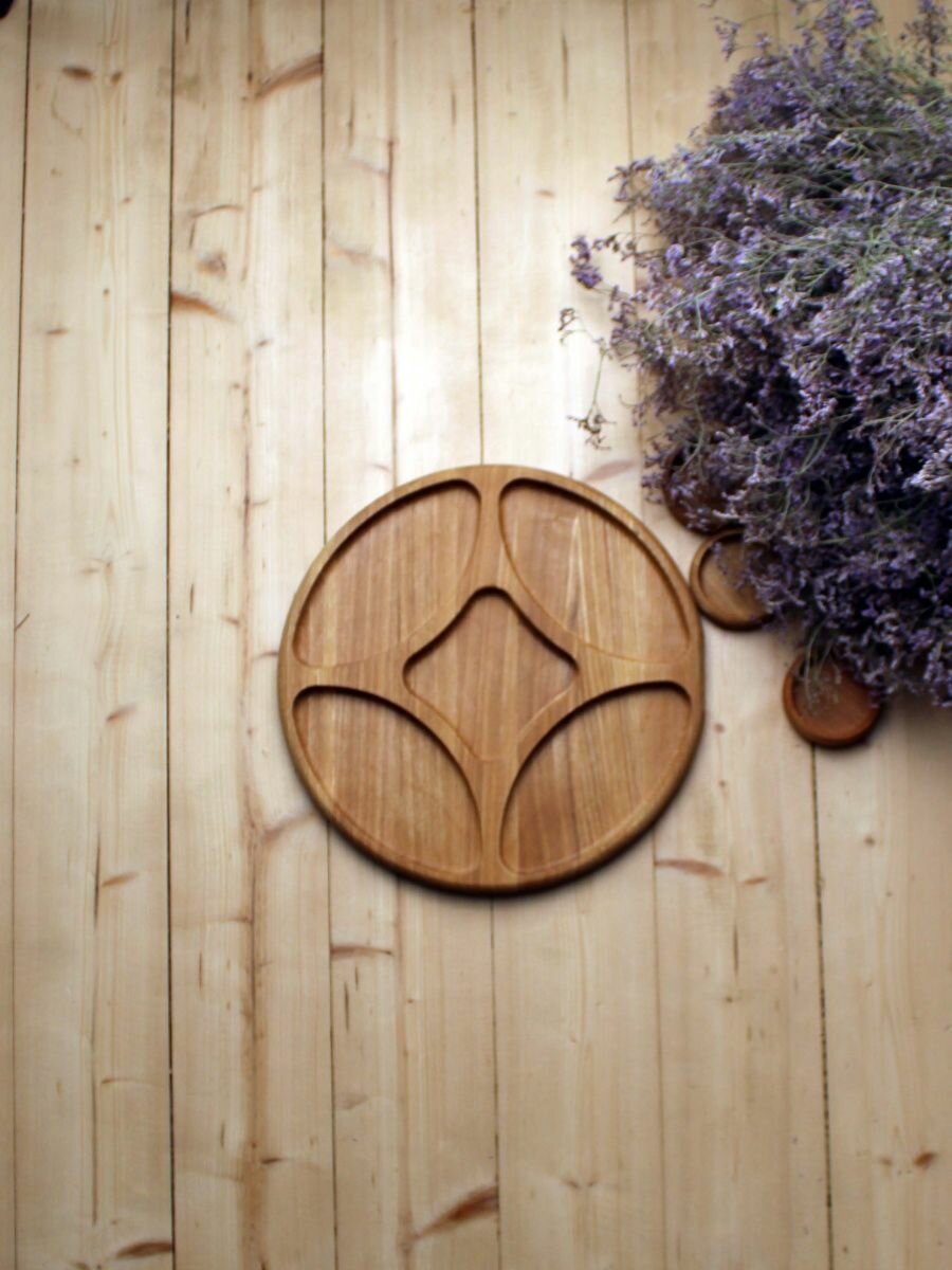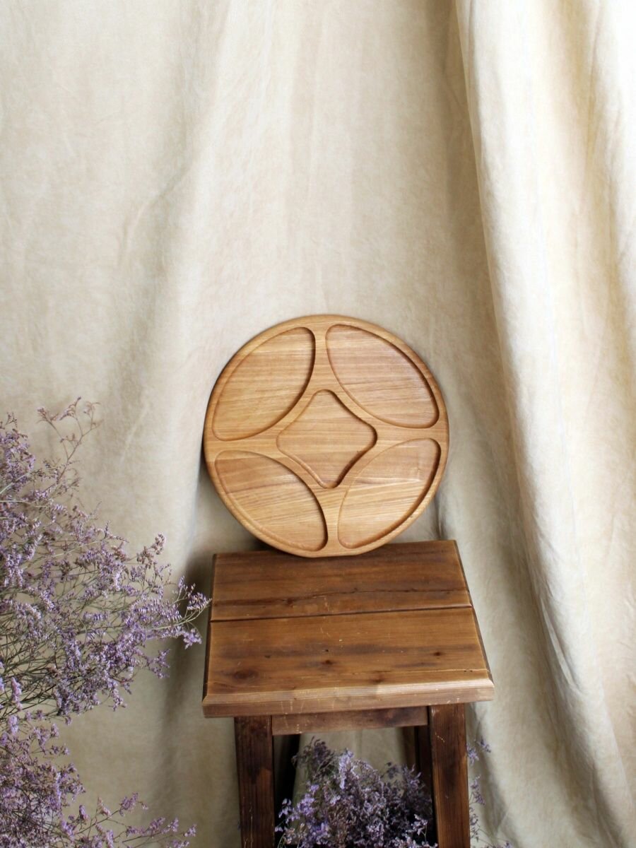 Сервировочная доска MZR, менажница деревянная, 25см, круглая, бежевая интересное: