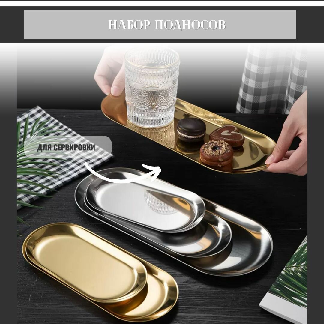 Ниже Вы можете прочитать отзывы на Набор подносов овальных металлических серебро, ознакомится с подробными характеристиками, посмотреть интересные обзоры и фотографии на Набор подносов овальных металлических серебро.