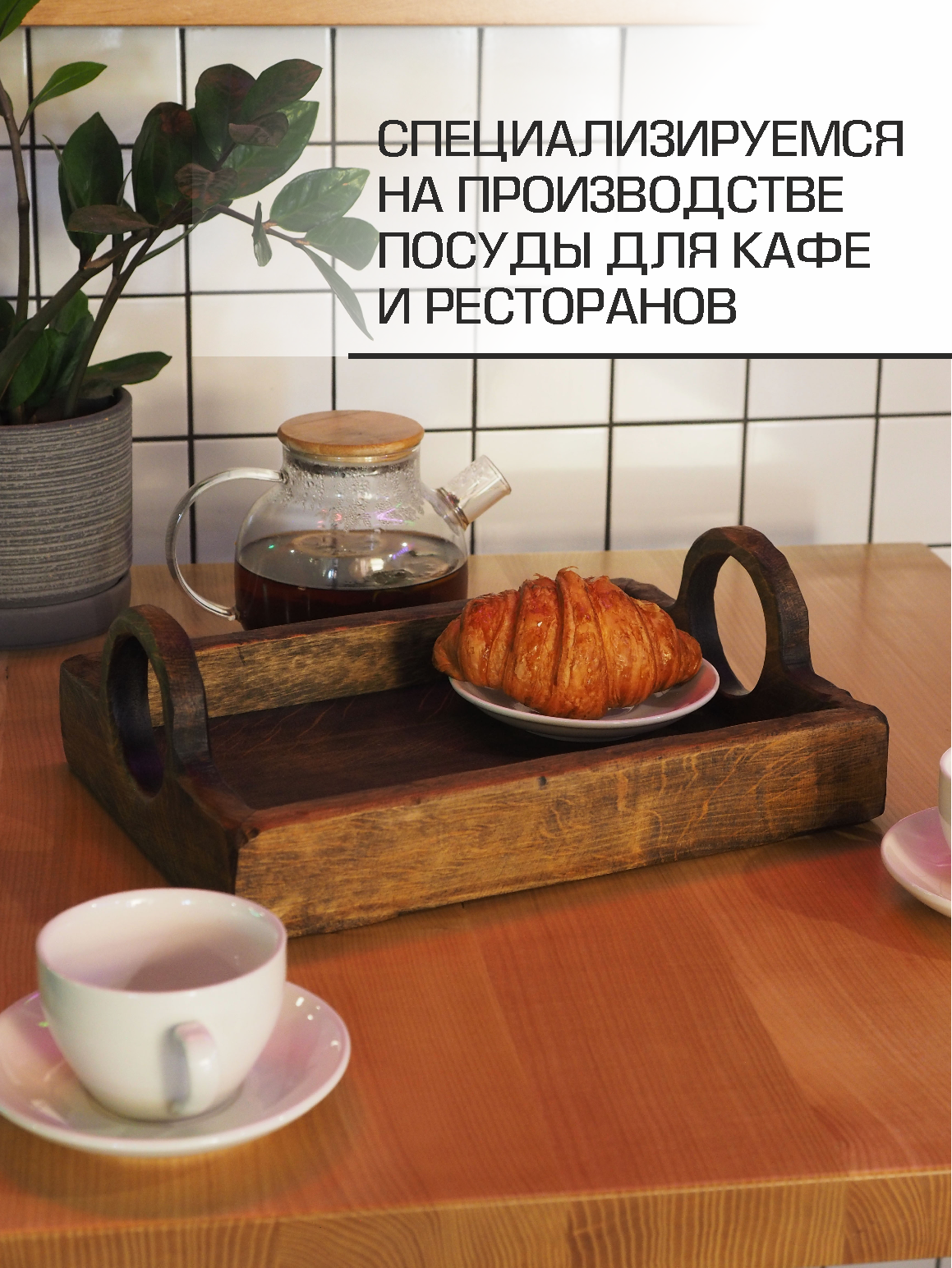 Поднос деревянный прямоугольный декоративный с бортами и ручками интересное: