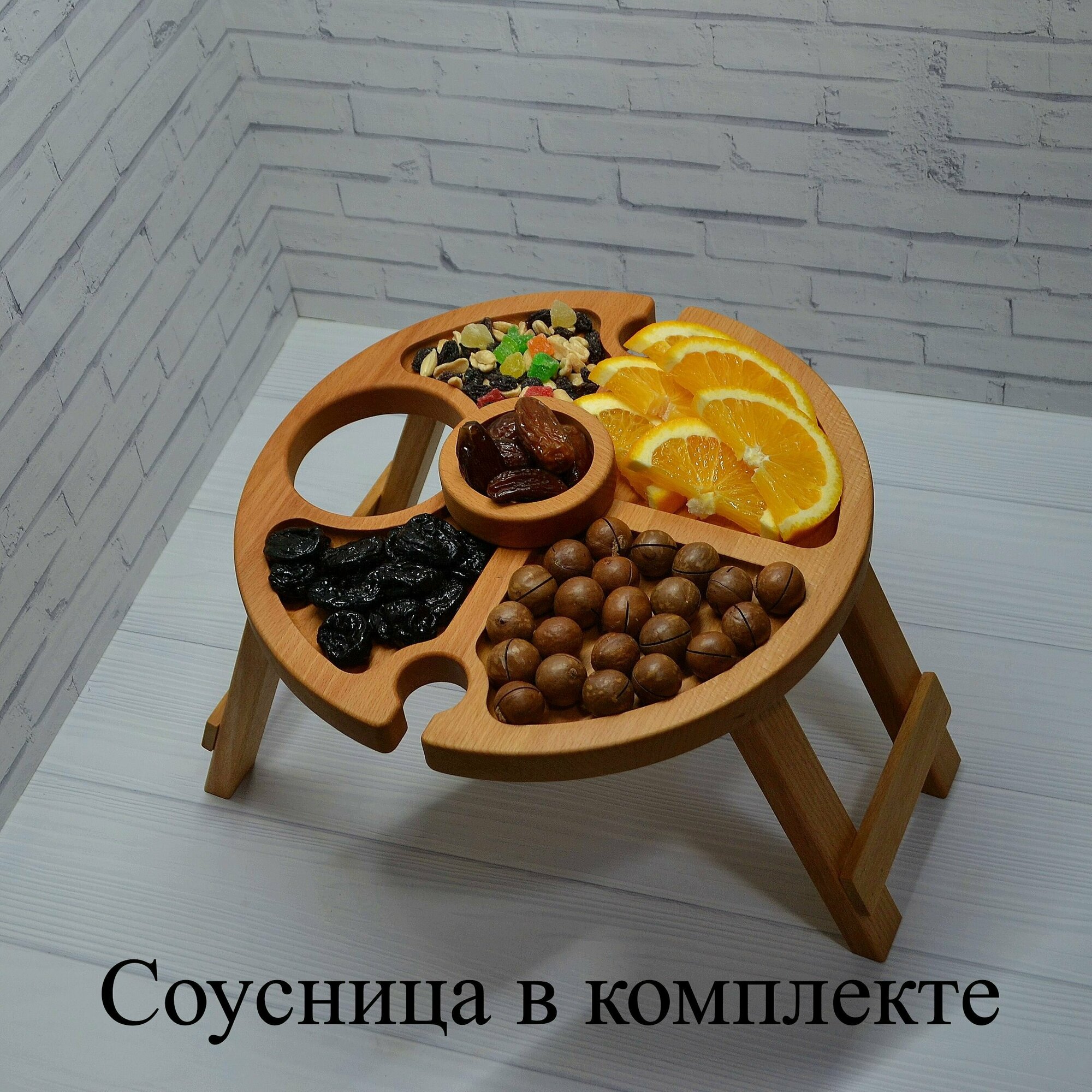 Винный столик из дерева Бука менажница 35 см поднос на ножках