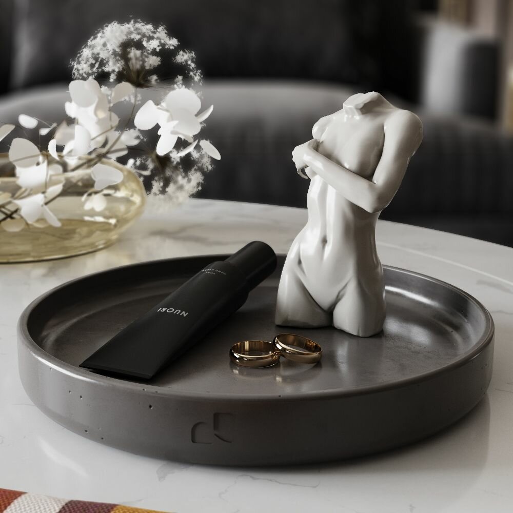 Интерьерная посуда для кухни и гостиной. Декоративная поднос - подставка 11х11 см. Bordeaux circle XS серая глянцевая.