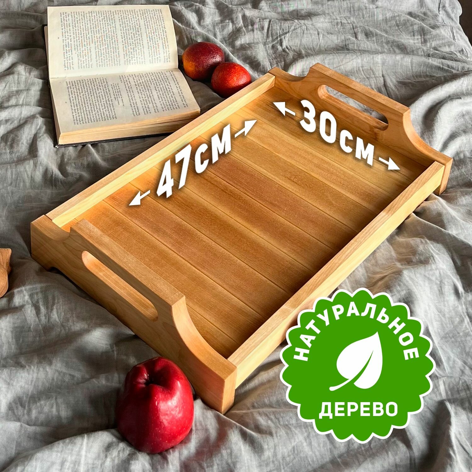 Поднос деревянный с ручками. Береза интересное: