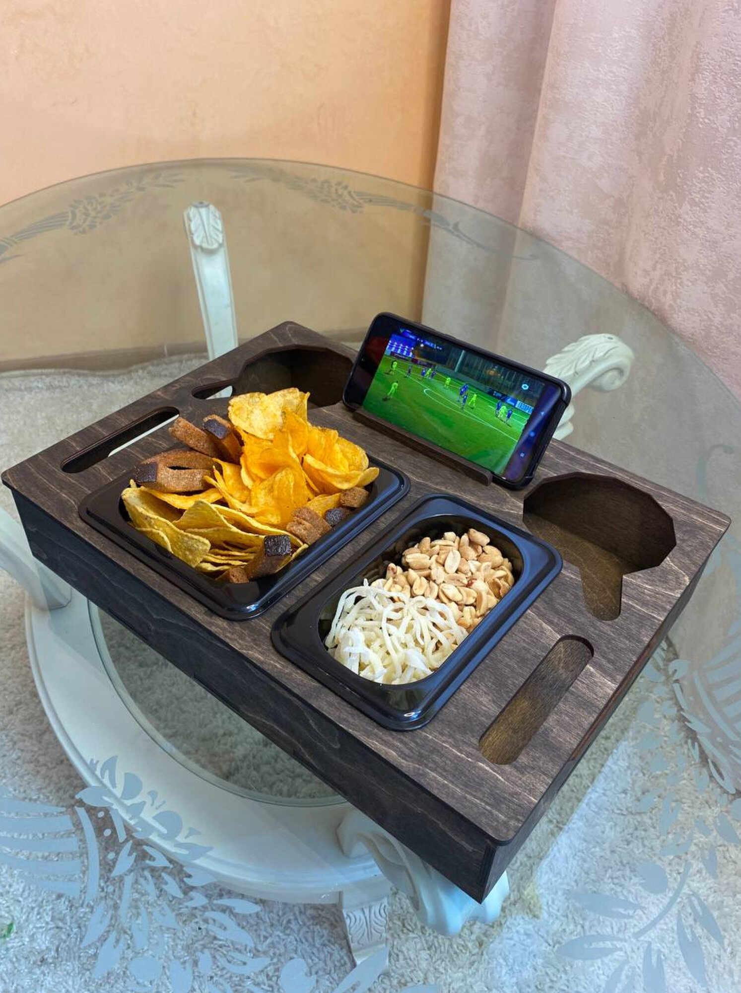 Винный столик из дерева Бука менажница 35 см поднос на ножках