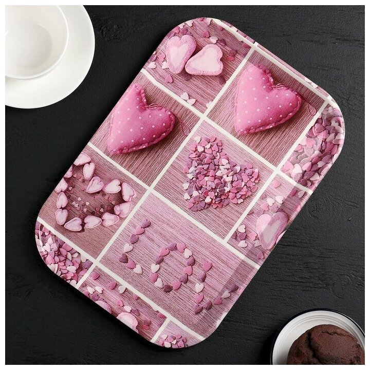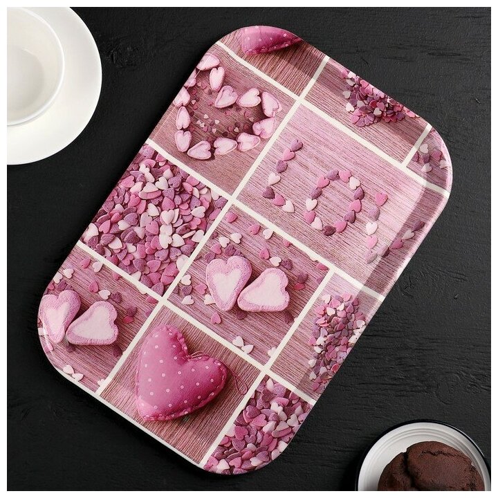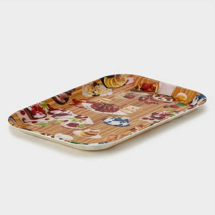 Купить Поднос пластиковый прямоугольный «Самобранка», 30×21×1,8 см, рисунок микс, 4278921