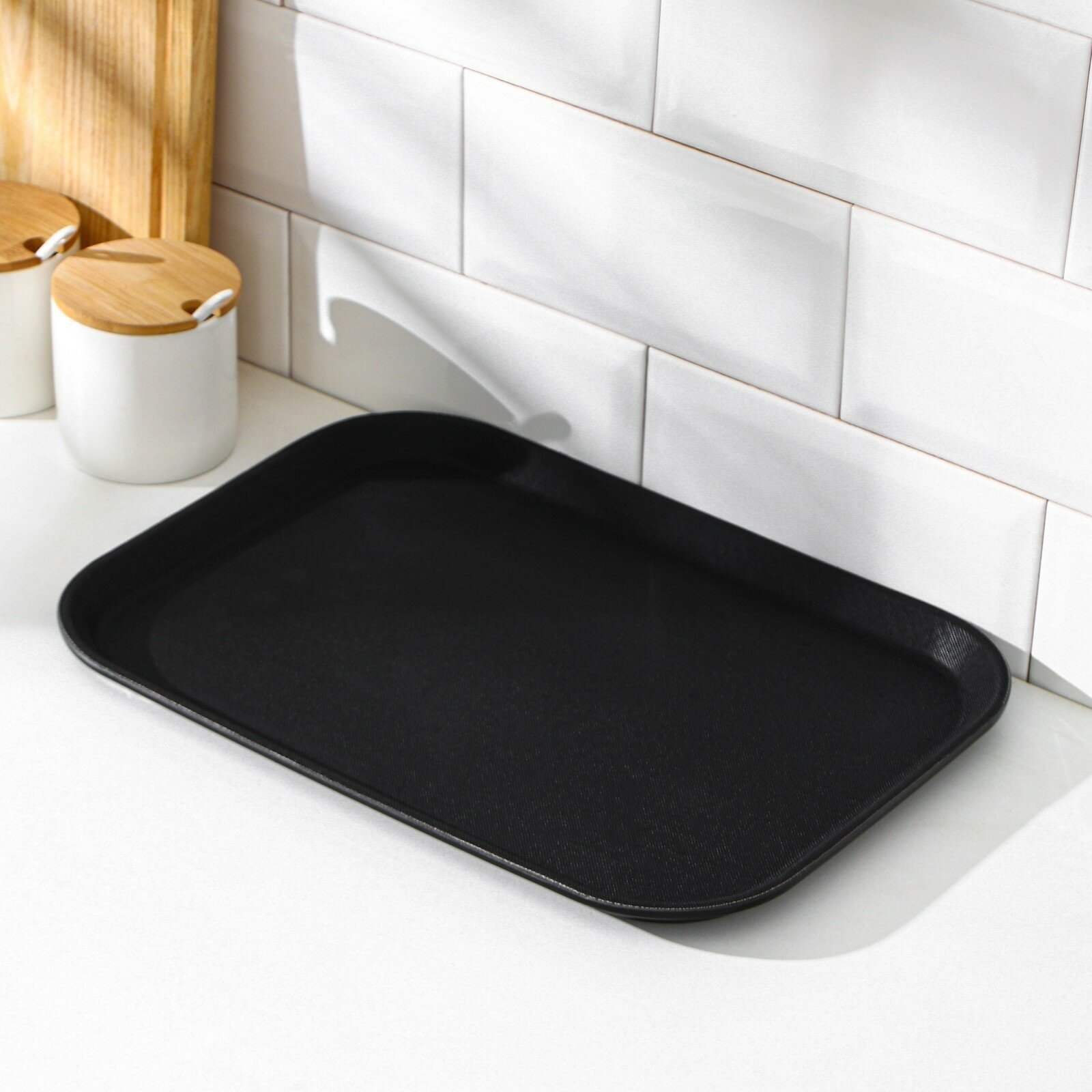 Купить Уценка Поднос прорезиненный, 35×25 см, цвет чёрный