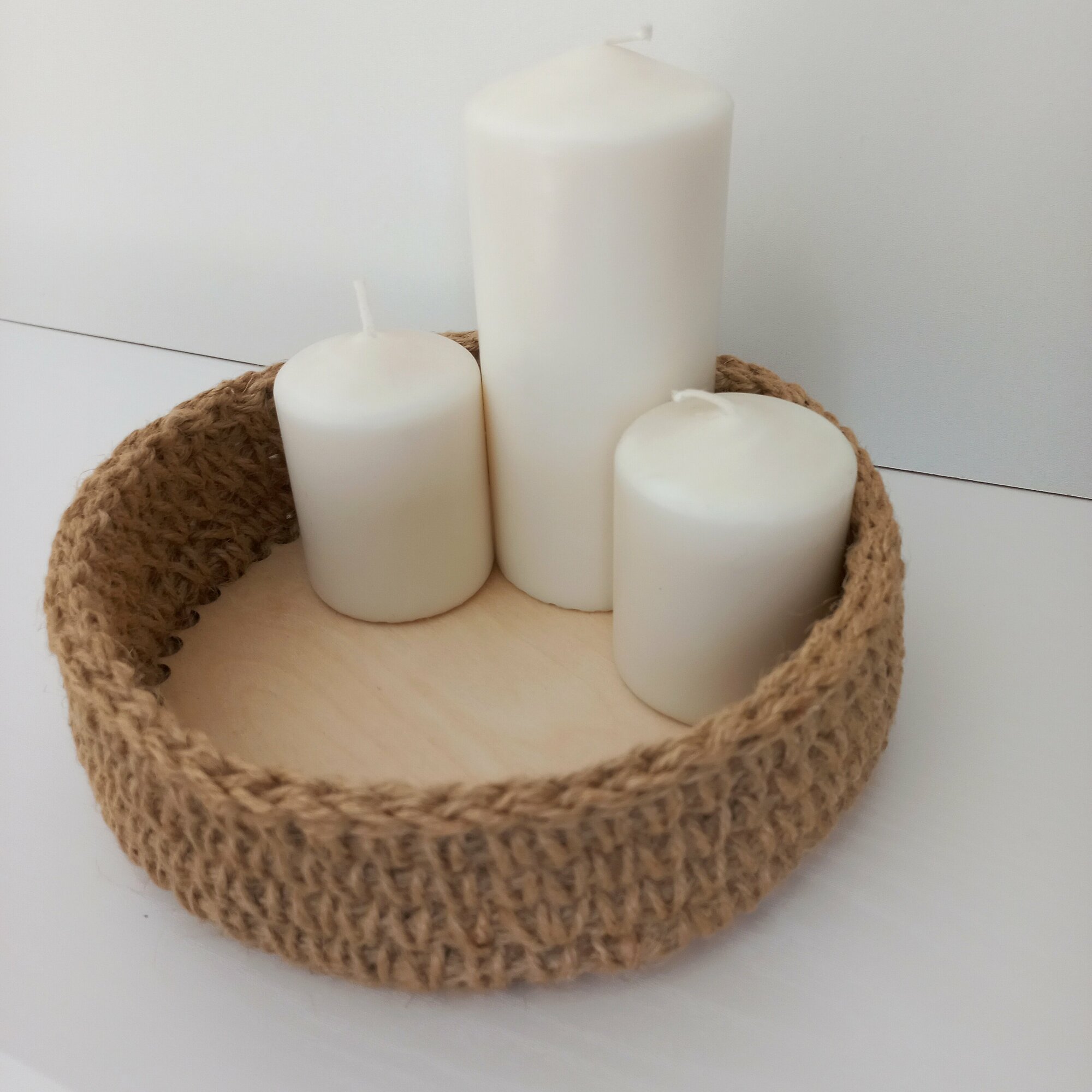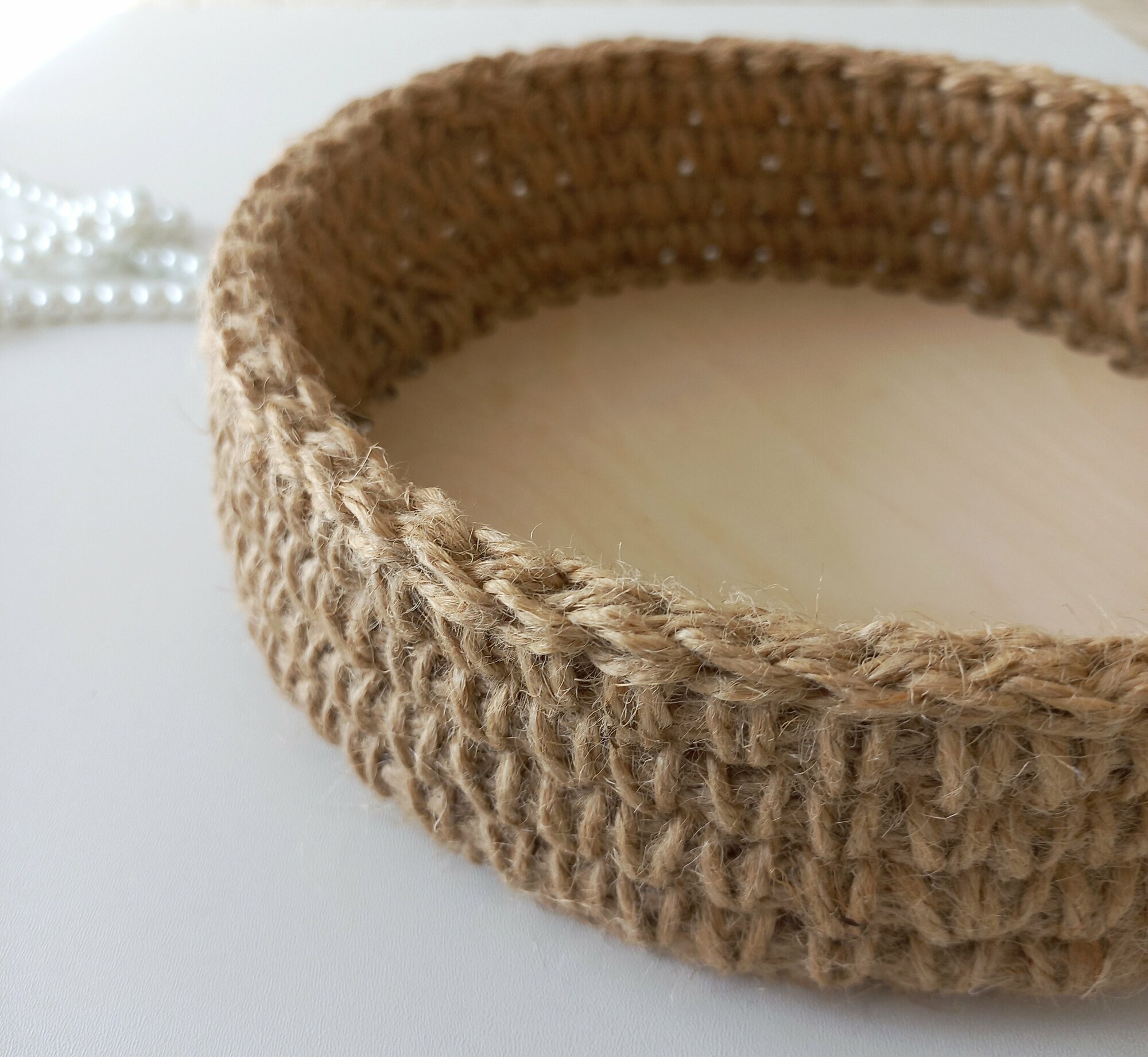 Купить Поднос-корзина ручной работы "Эко", для хранения, натуральный джут, жёсткое дно, 20х20 см
