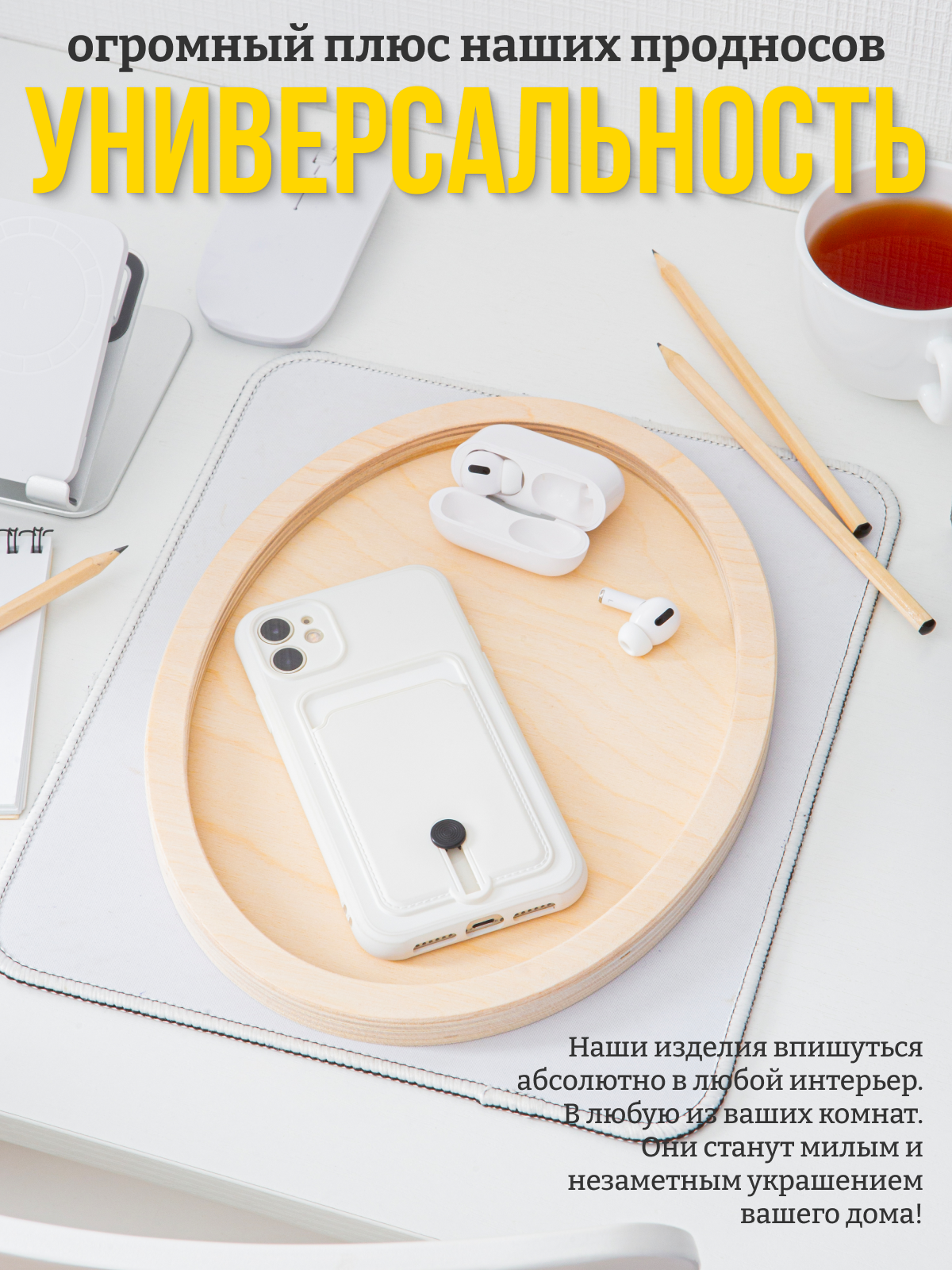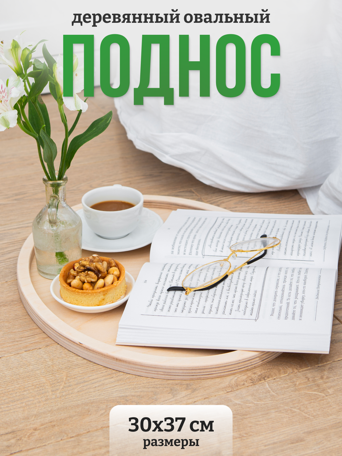 Деревянный овальный поднос 30x37 см, из дерева, декоративный для дома и для декора / Калейдоскоп интересное: