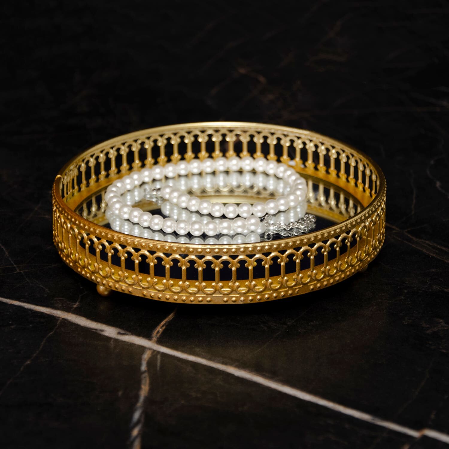 Купить Поднос декоративный зеркальный 17 см, металл, золотистый