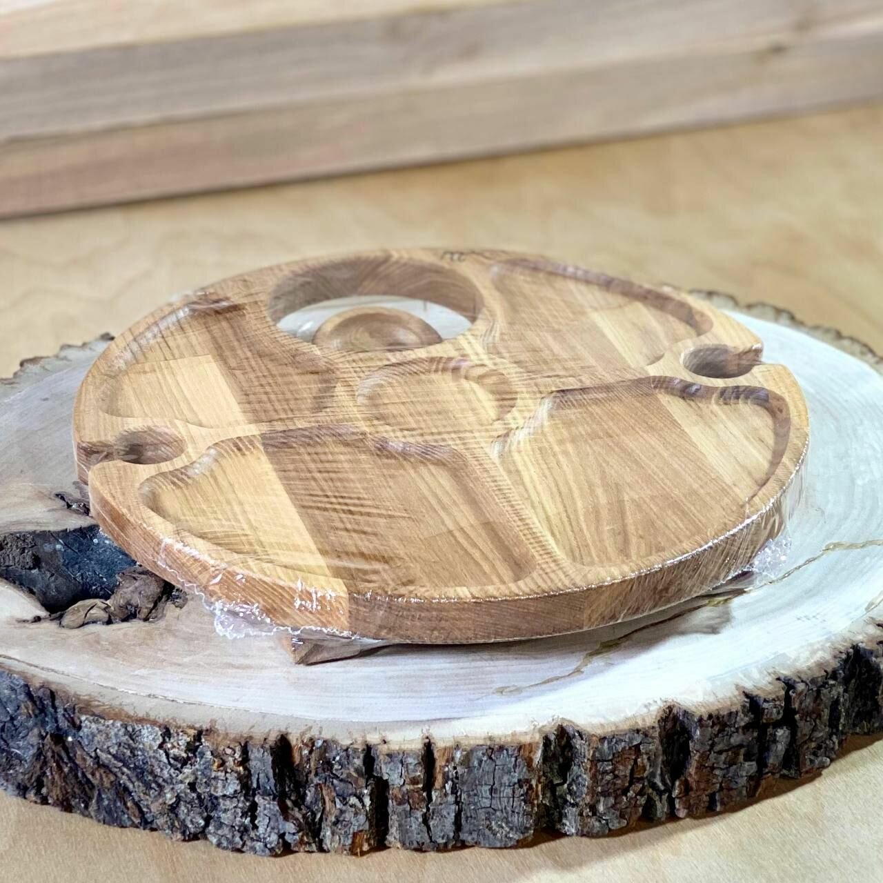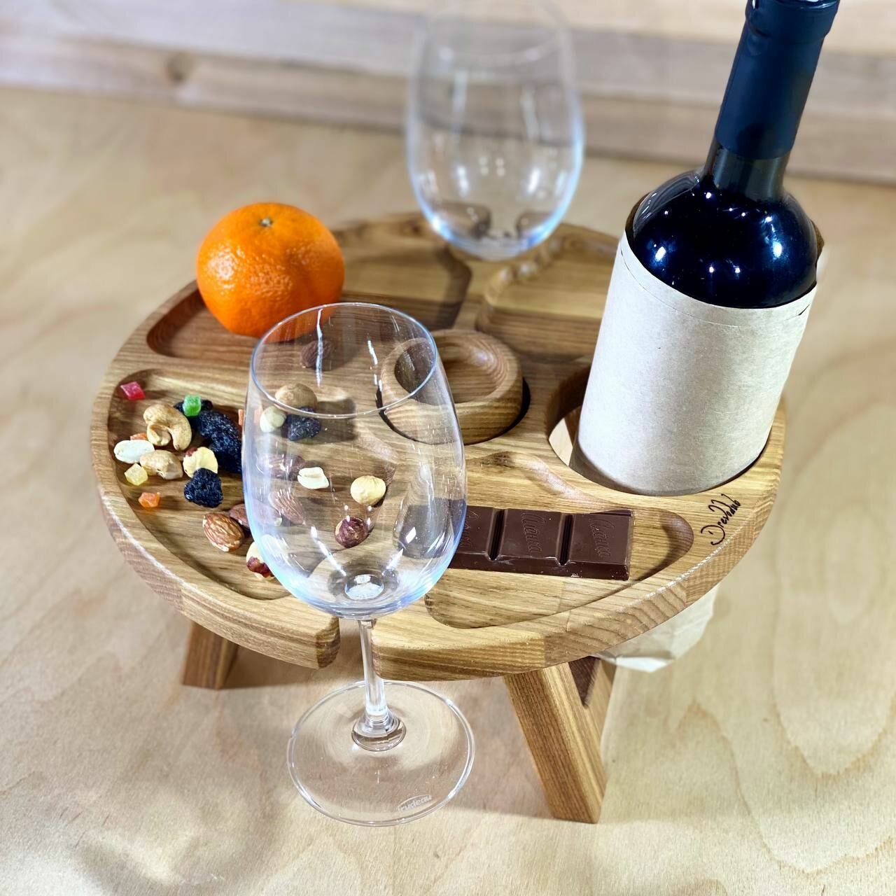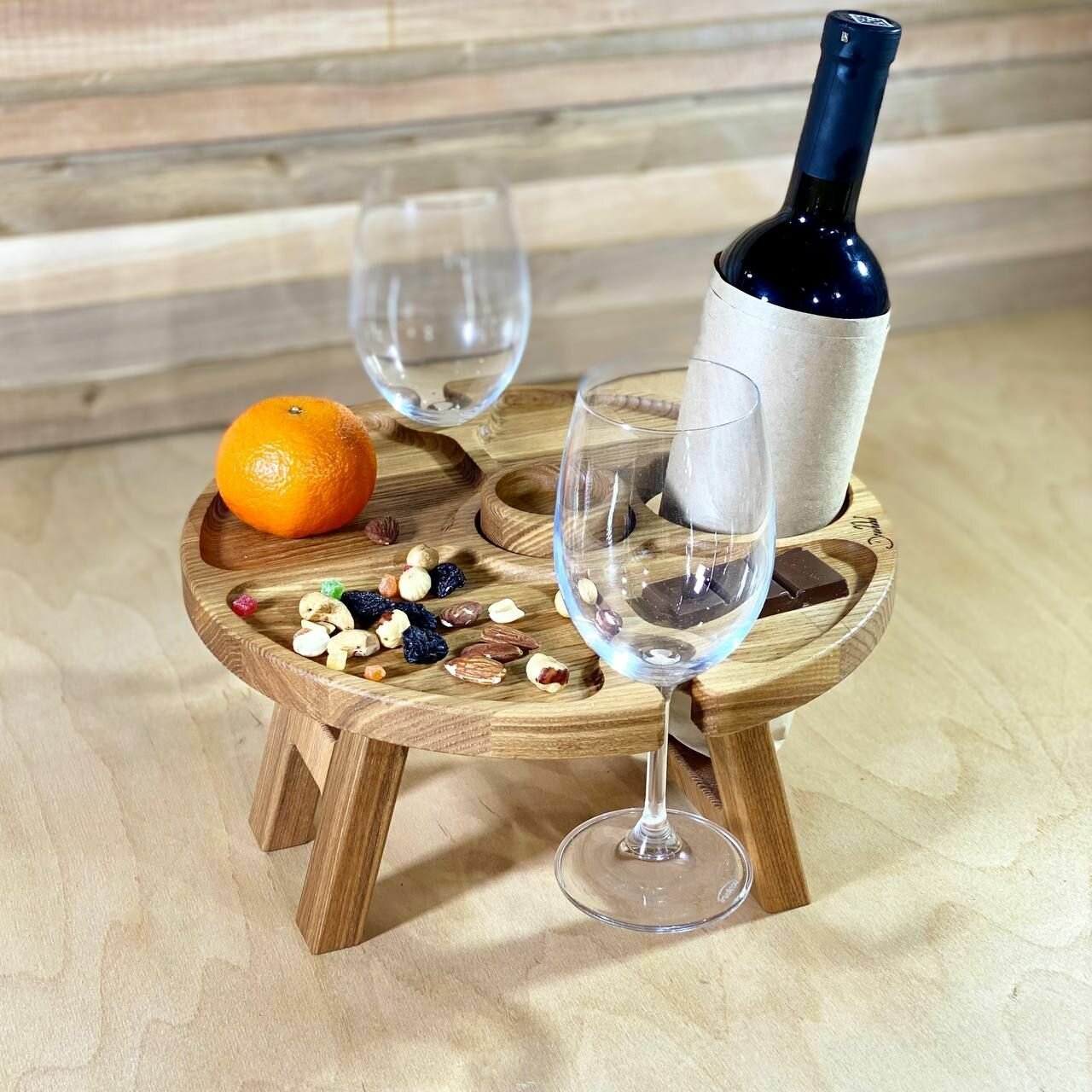 Винный столик из дерева Бука менажница 35 см поднос на ножках