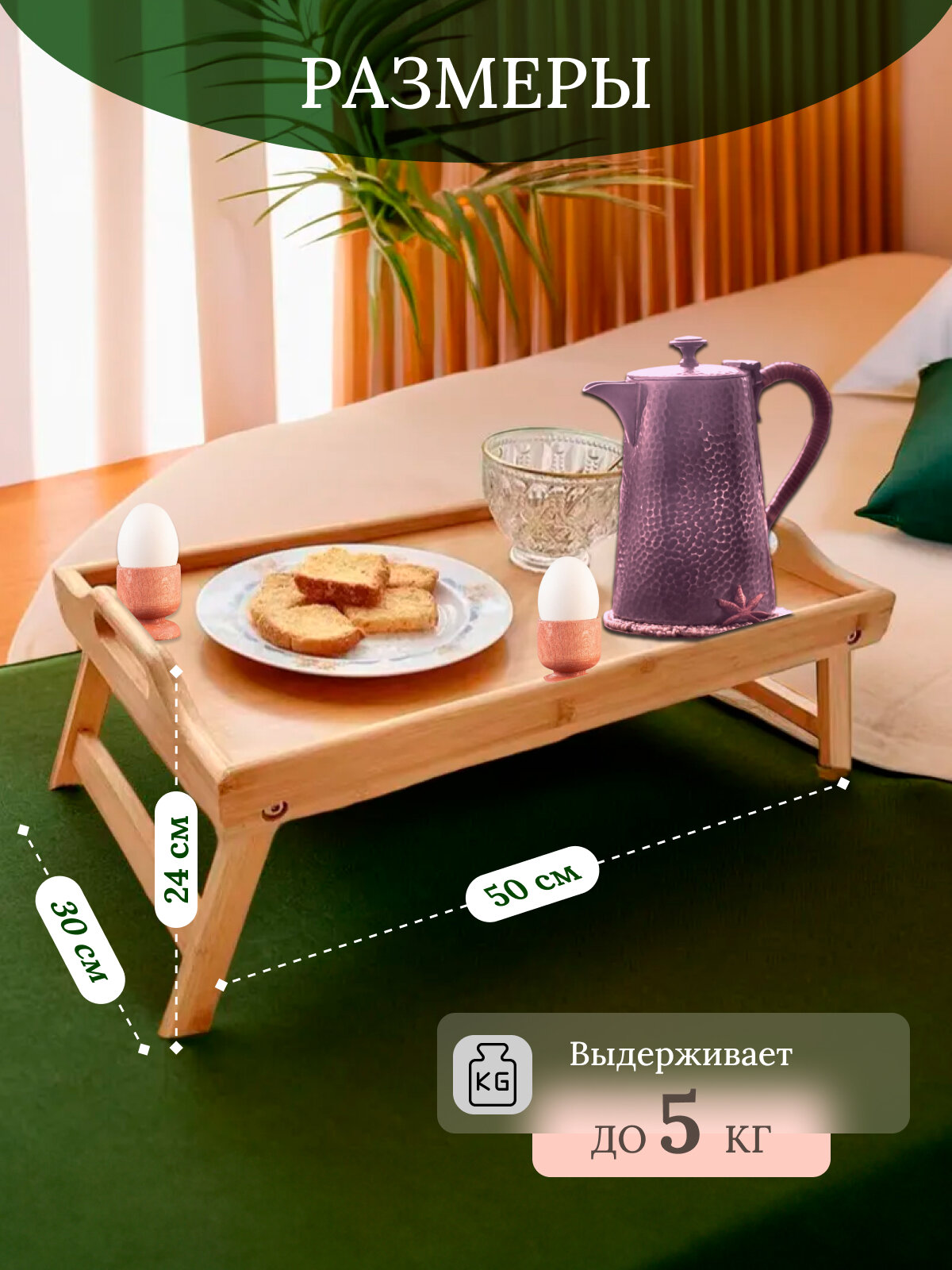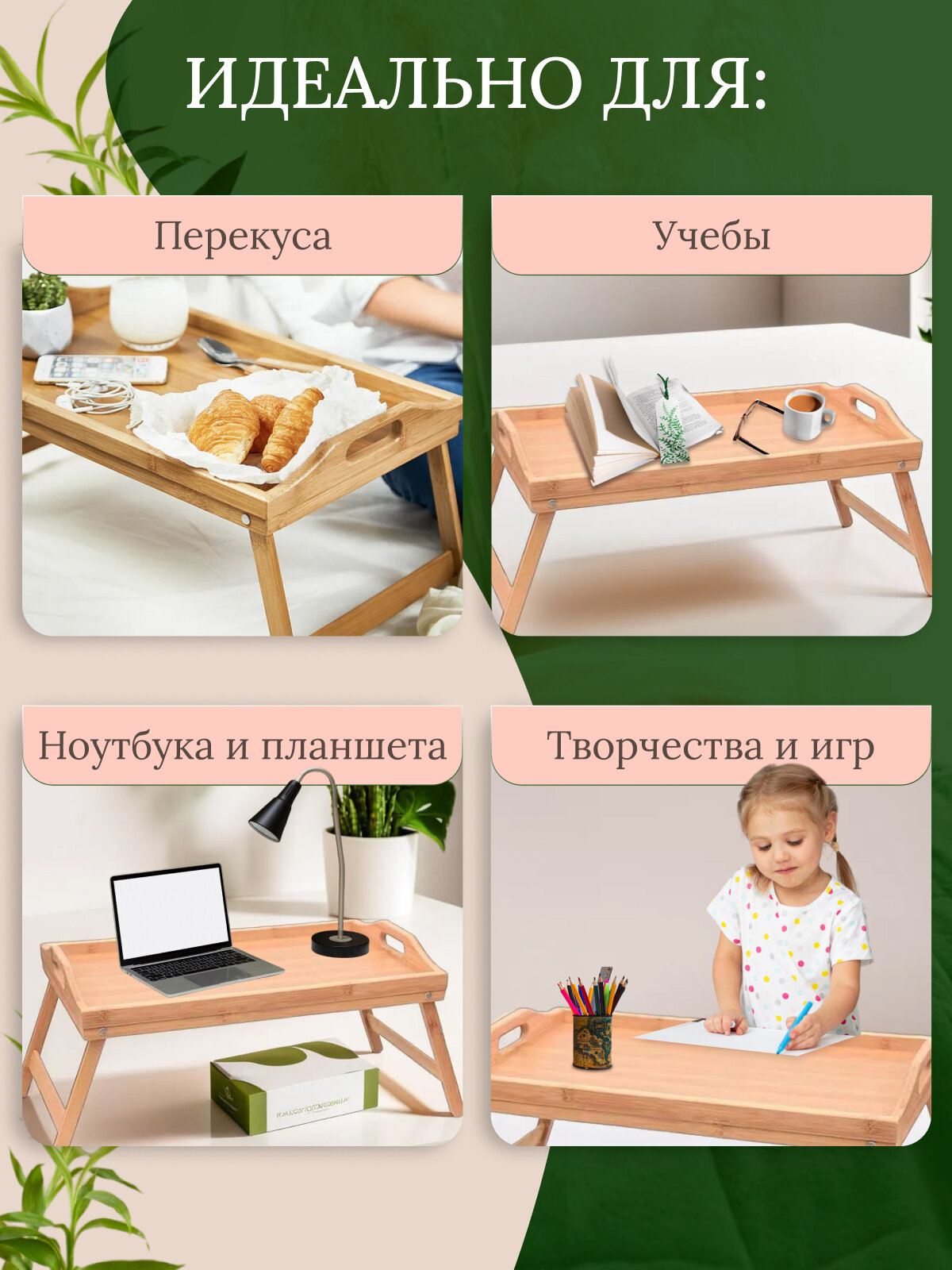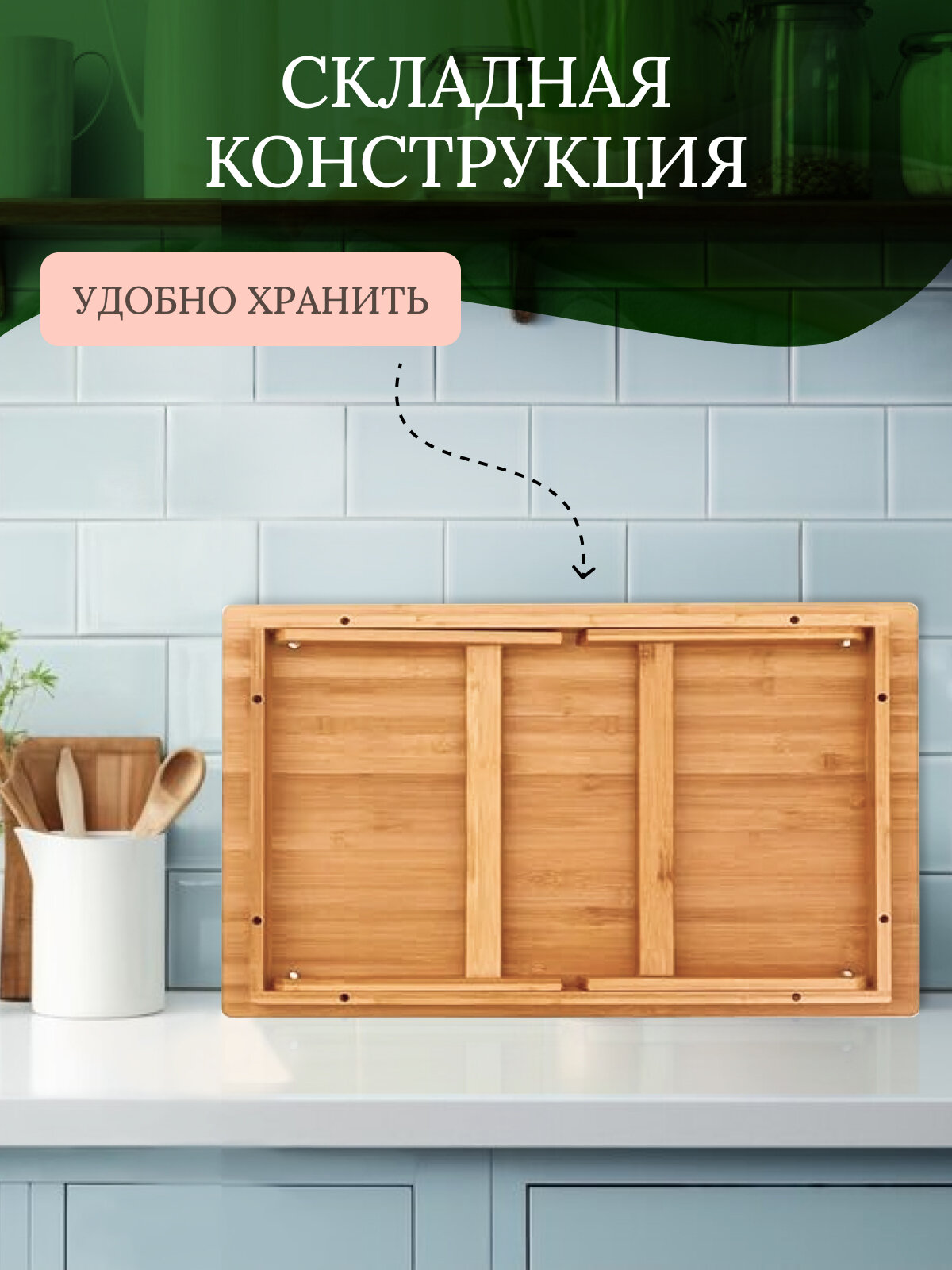 Столик для завтрака в постель, поднос деревянный, WOWZILLA, дерево/бамбук, складной интересное: