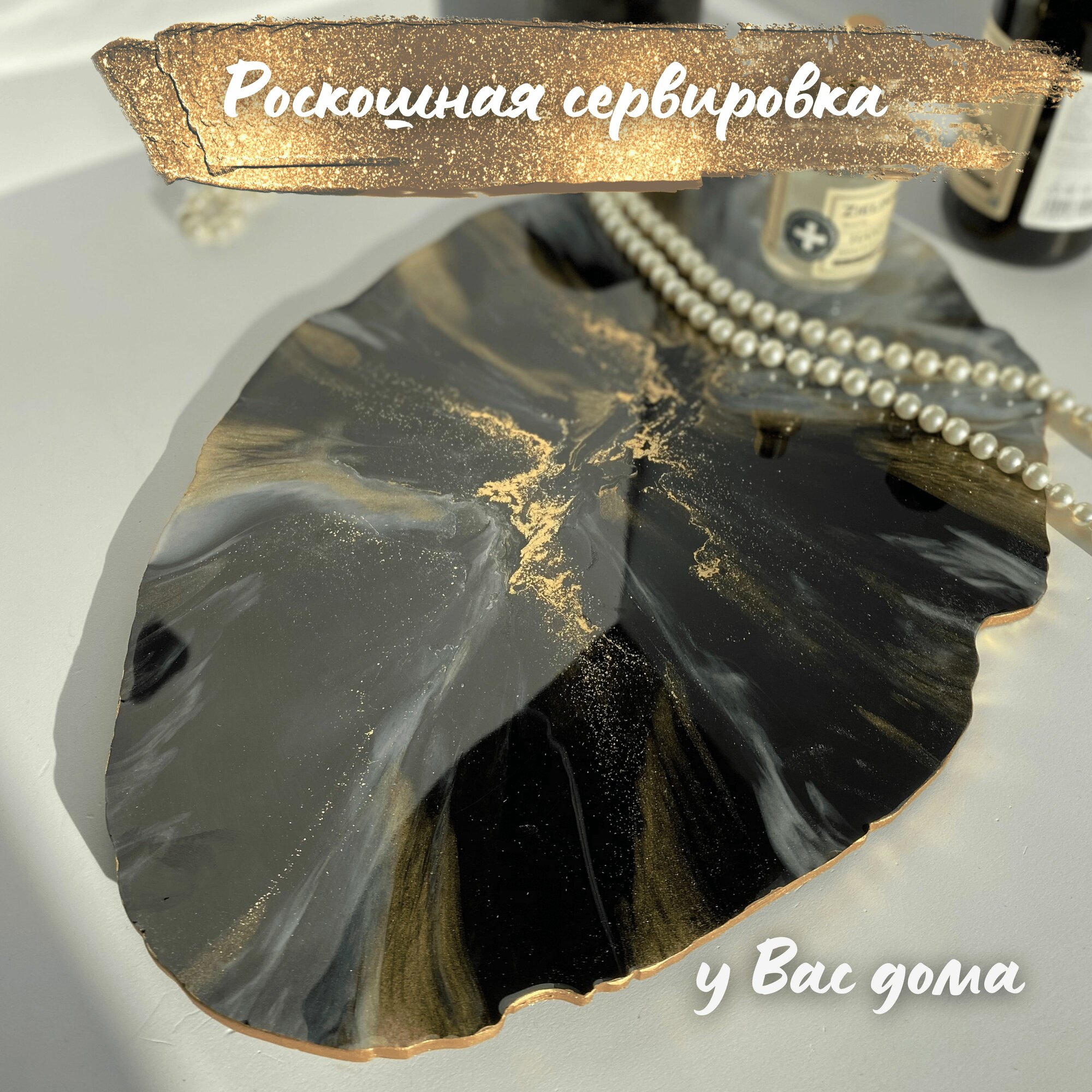 Сервировочная доска для сыра и закусок INTEAMART, Мрамор с золотом. Ручная работа. Эпоксидная смола интересное: