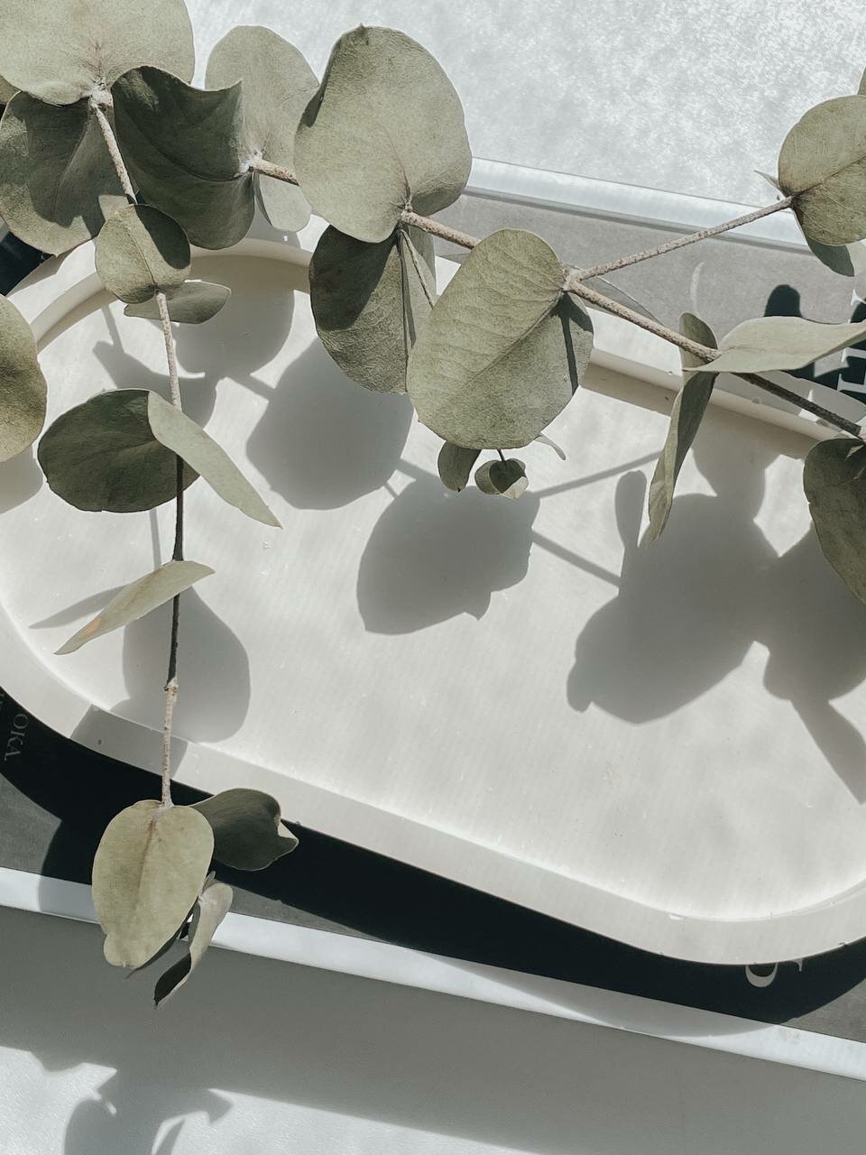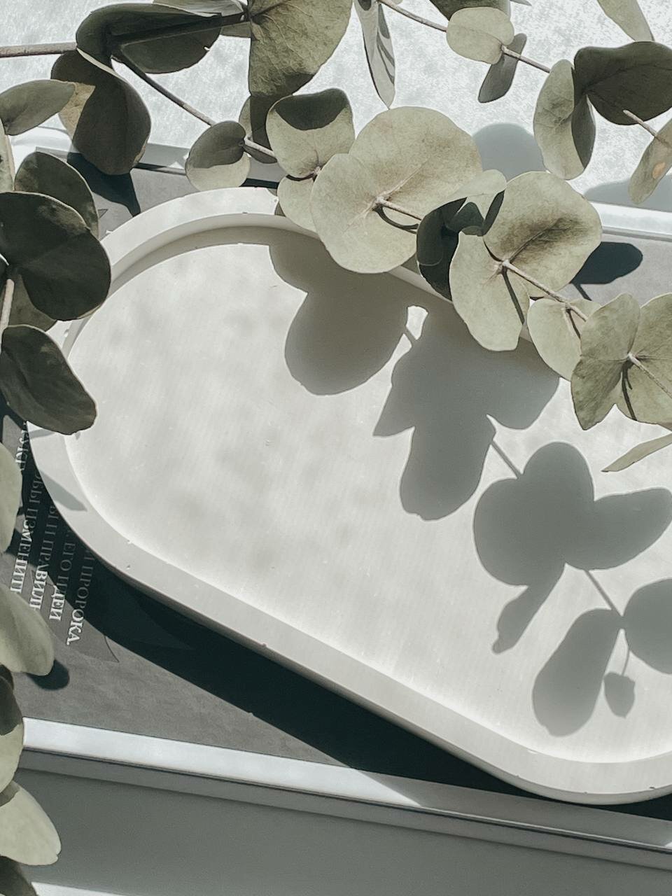 Купить Поднос из гипса декоративный белый, подставка под украшения, 18 см х 9,5 см