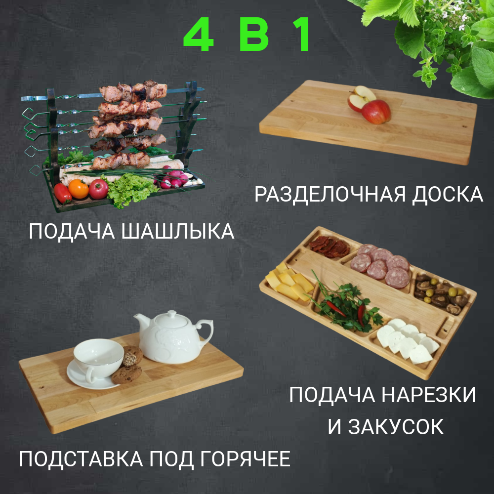 Менажница поднос для подачи шашлыка с держателями шампуров NWOOD Текстура жизни, береза, 25/45 см интересное: