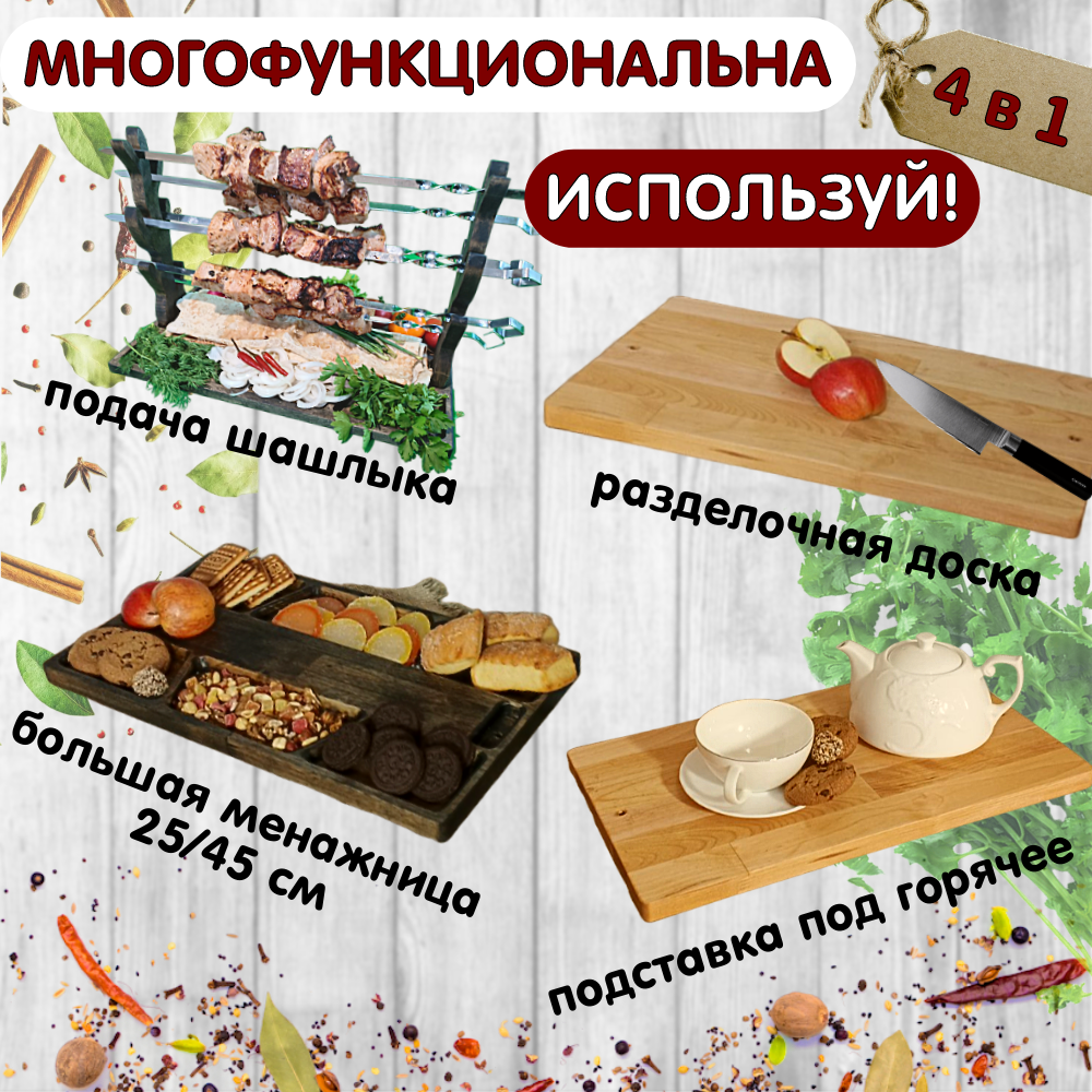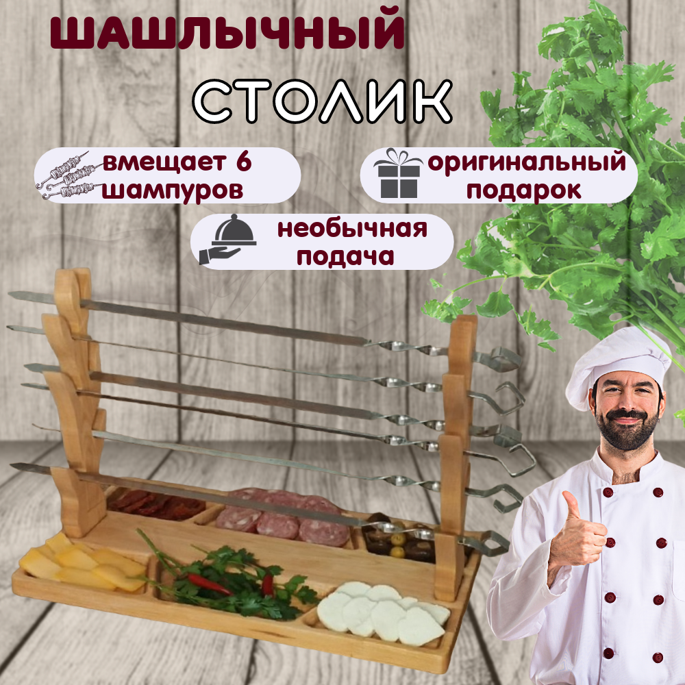 Шашлычный столик NWOOD - универсальный аксессуар для подачи шашлыка, подставка для шампуров