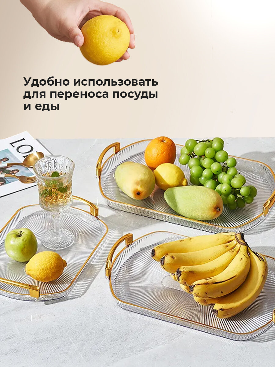Набор подносов Conflate, пластик, поднос декоративный, золотистые ручки, прямоугольный, 3 шт интересное: