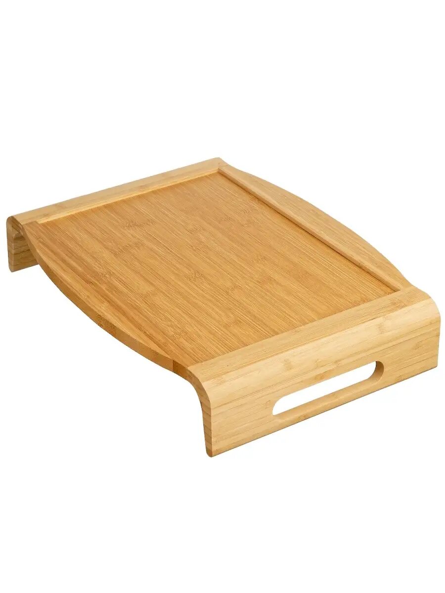 Поднос столик деревянный бамбуковый 46*36*8 см с ручками интересное: