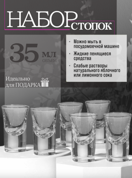 Ниже Вы можете прочитать отзывы на Набор стопок - шотов, рюмок 6 х 35 мл. H-7.2 см. D- 4.5 см. для водки, ликера, настоек стекло, ознакомится с подробными характеристиками, посмотреть интересные обзоры и фотографии на Набор стопок - шотов, рюмок 6 х 35 мл. H-7.2 см. D- 4.5 см. для водки, ликера, настоек стекло.