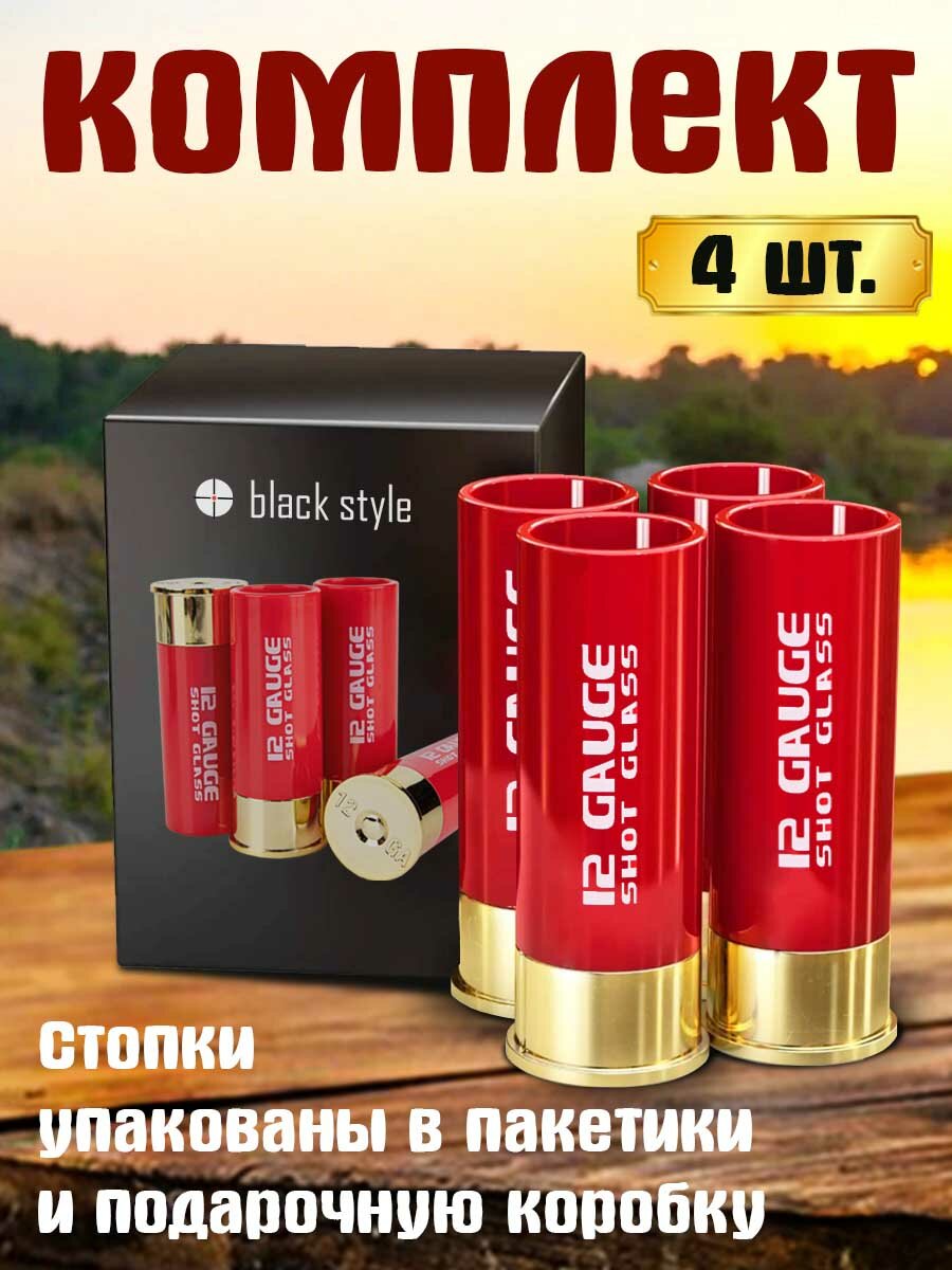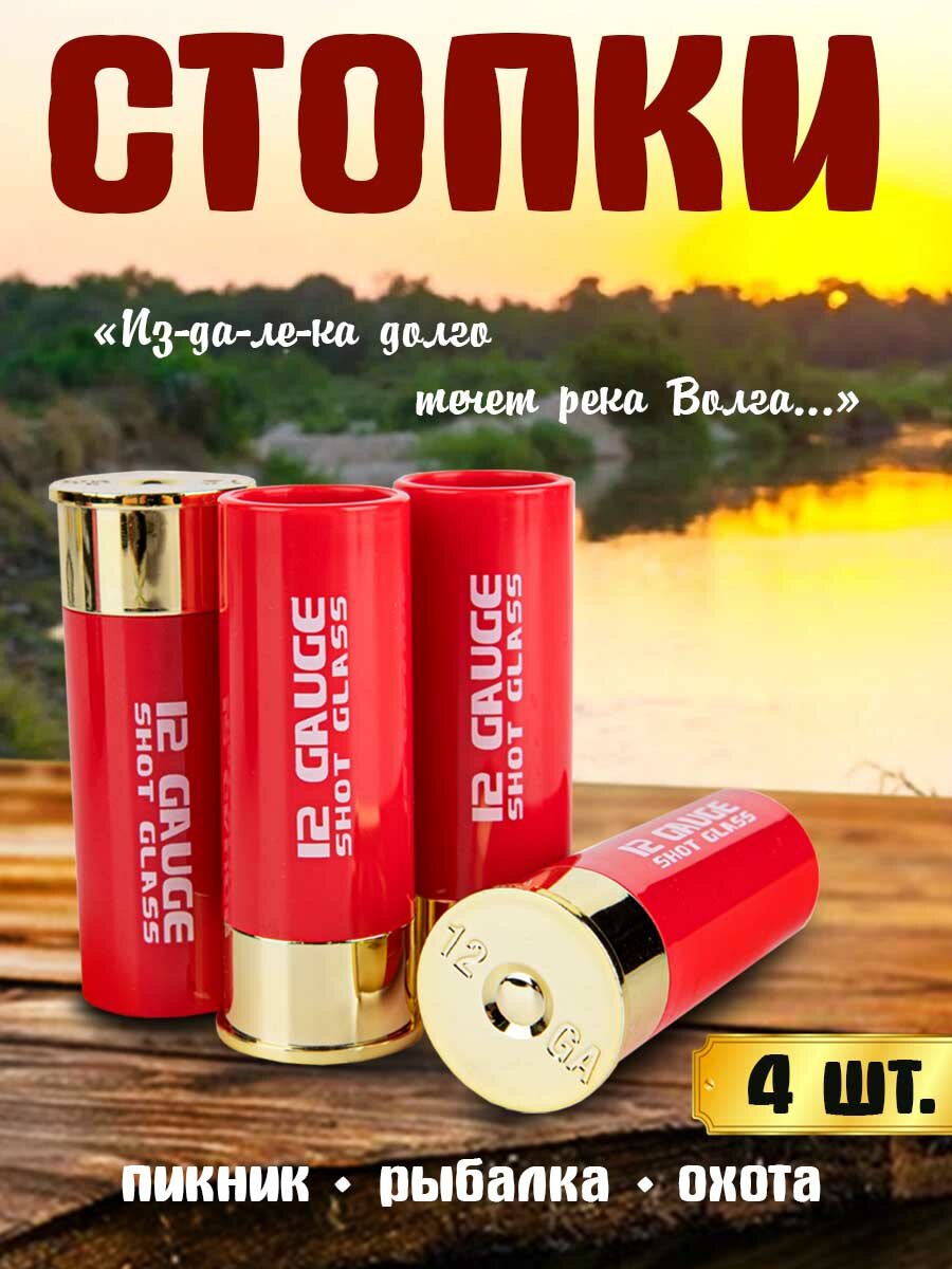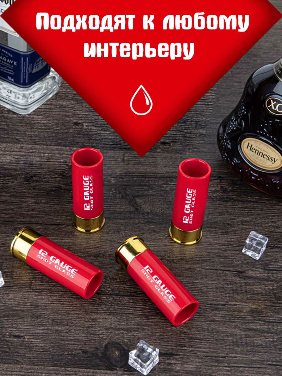 Набор стопок для водки 4 шт. 12 калибр в виде патронов, красные по 50 мл интересное: