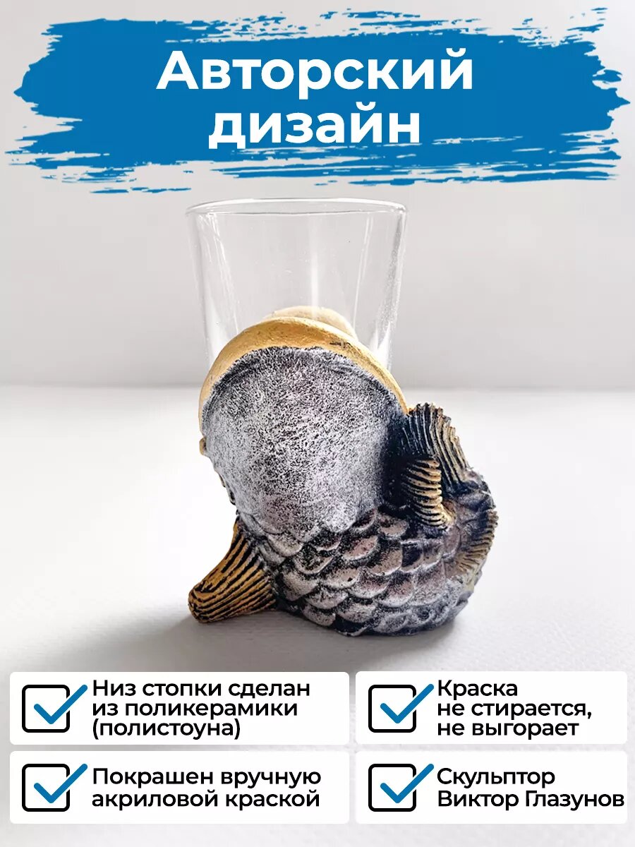 Рюмка-сувенир АБ Сувениры "Рыбка", на подставке, для водки, 50 мл интересное: