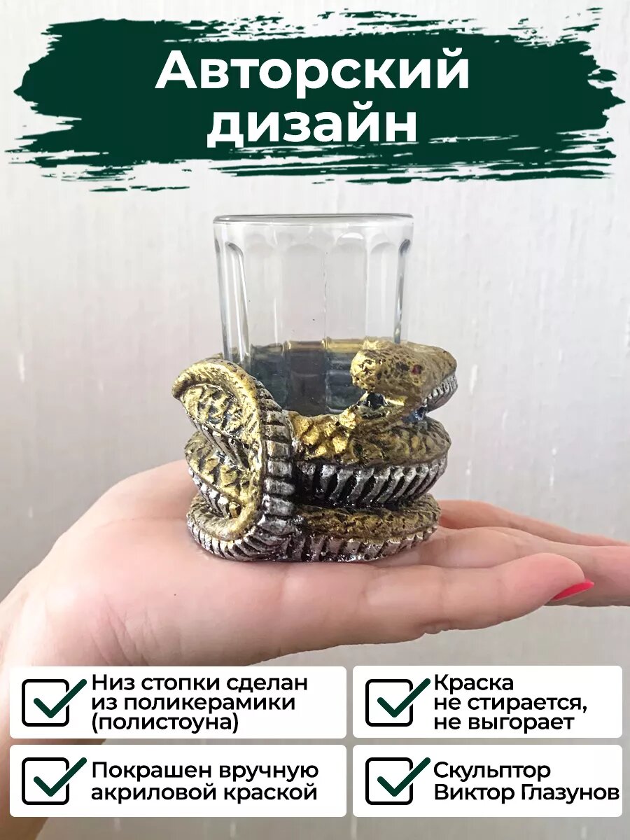 Рюмка для водки "Змея", 50мл, стекло/полистоун, с подставкой, АБ Сувениры интересное: