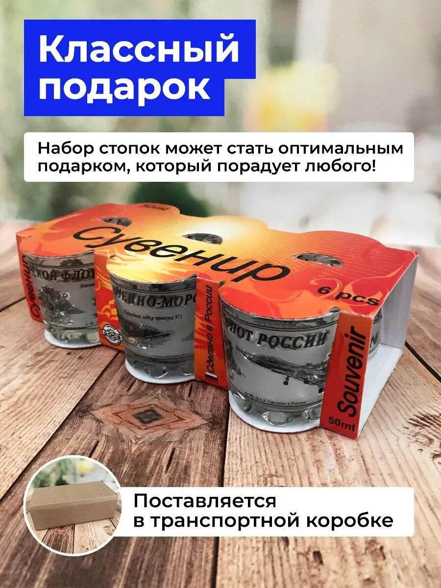 Набор стопок ВМФ, 6 штук, стекло, 50 мл, деколь, АБ "Сувениры" интересное: