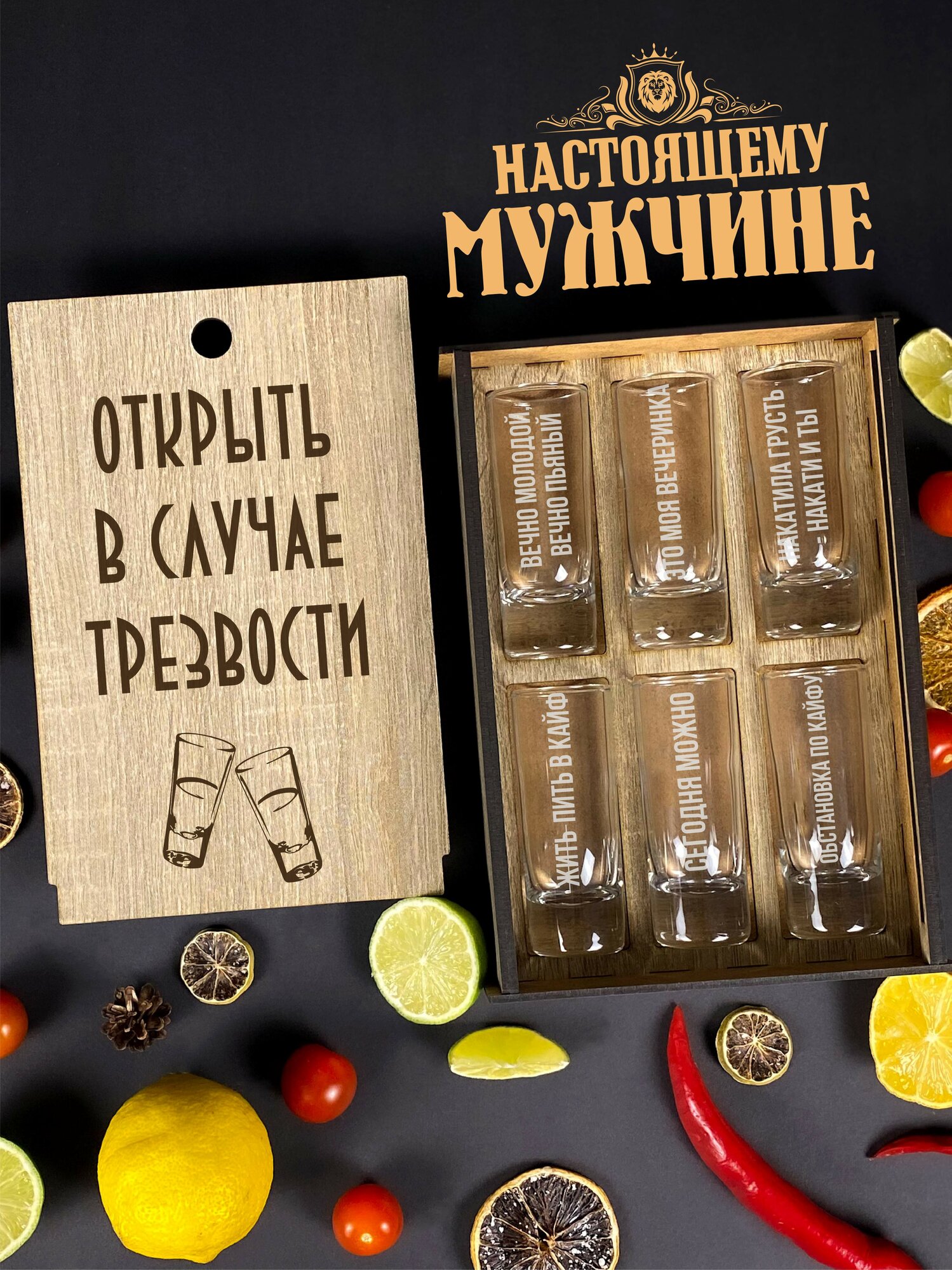 СохранитьПодарочный набор стопок Открыть в случае трезвости. Рюмки для водки, коньяка, текилы в подарок мужчине и женщине на день рождения. интересное:
