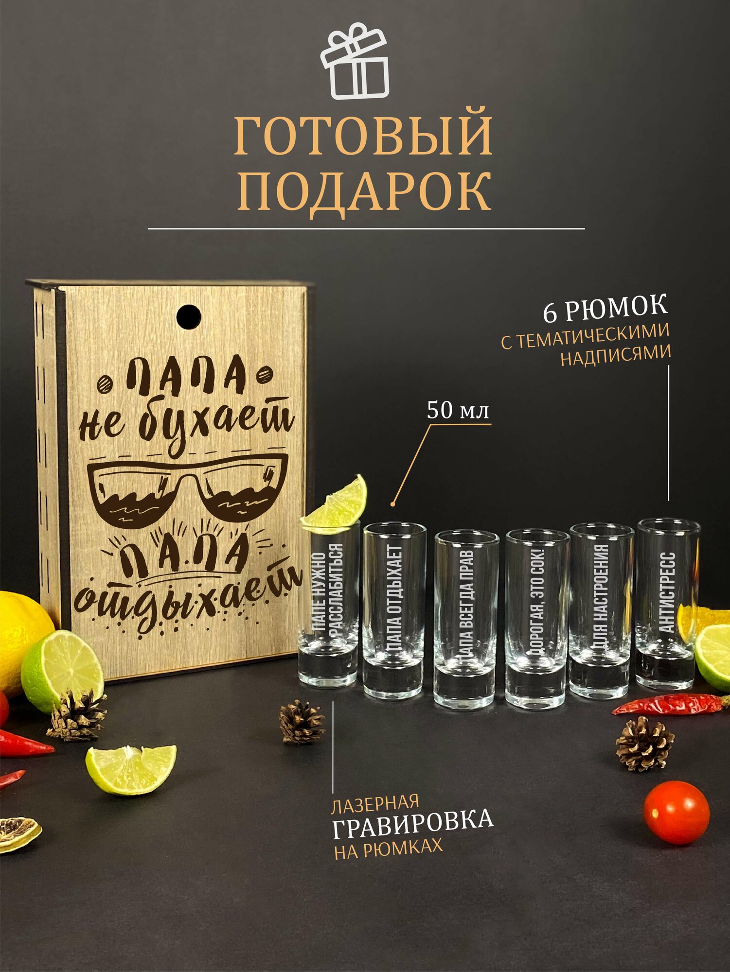 СохранитьПодарочный набор стопок. Рюмки для водки, коньяка, текилы в подарок папе на день рождения. интересное: