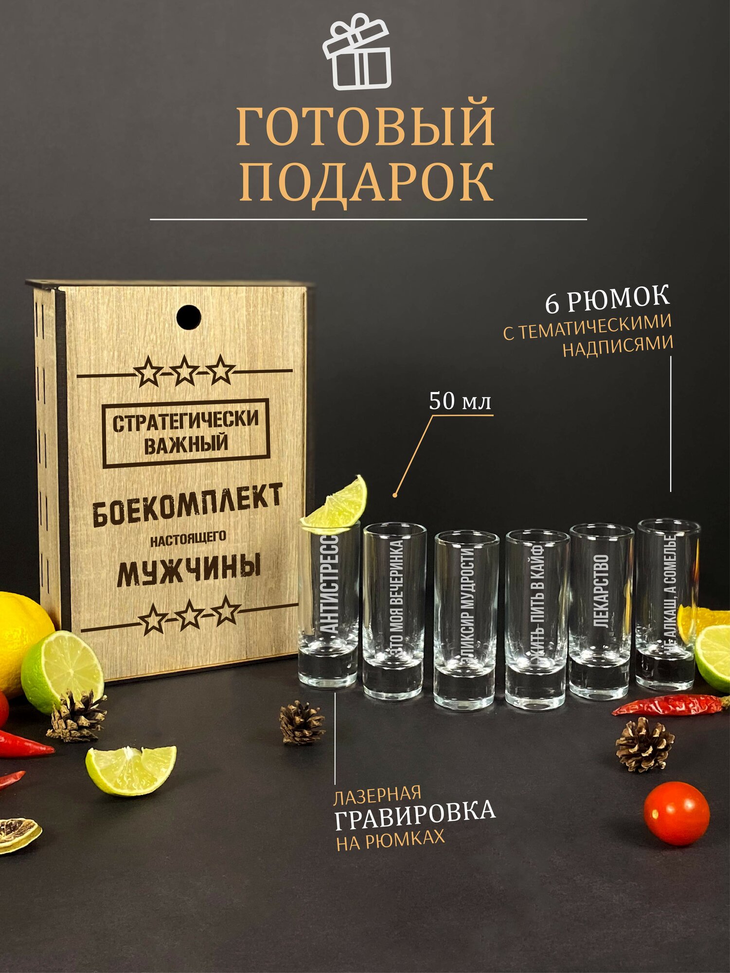 Подарочный набор стопок. Рюмки для водки, коньяка, текилы в подарок папе на день рождения.