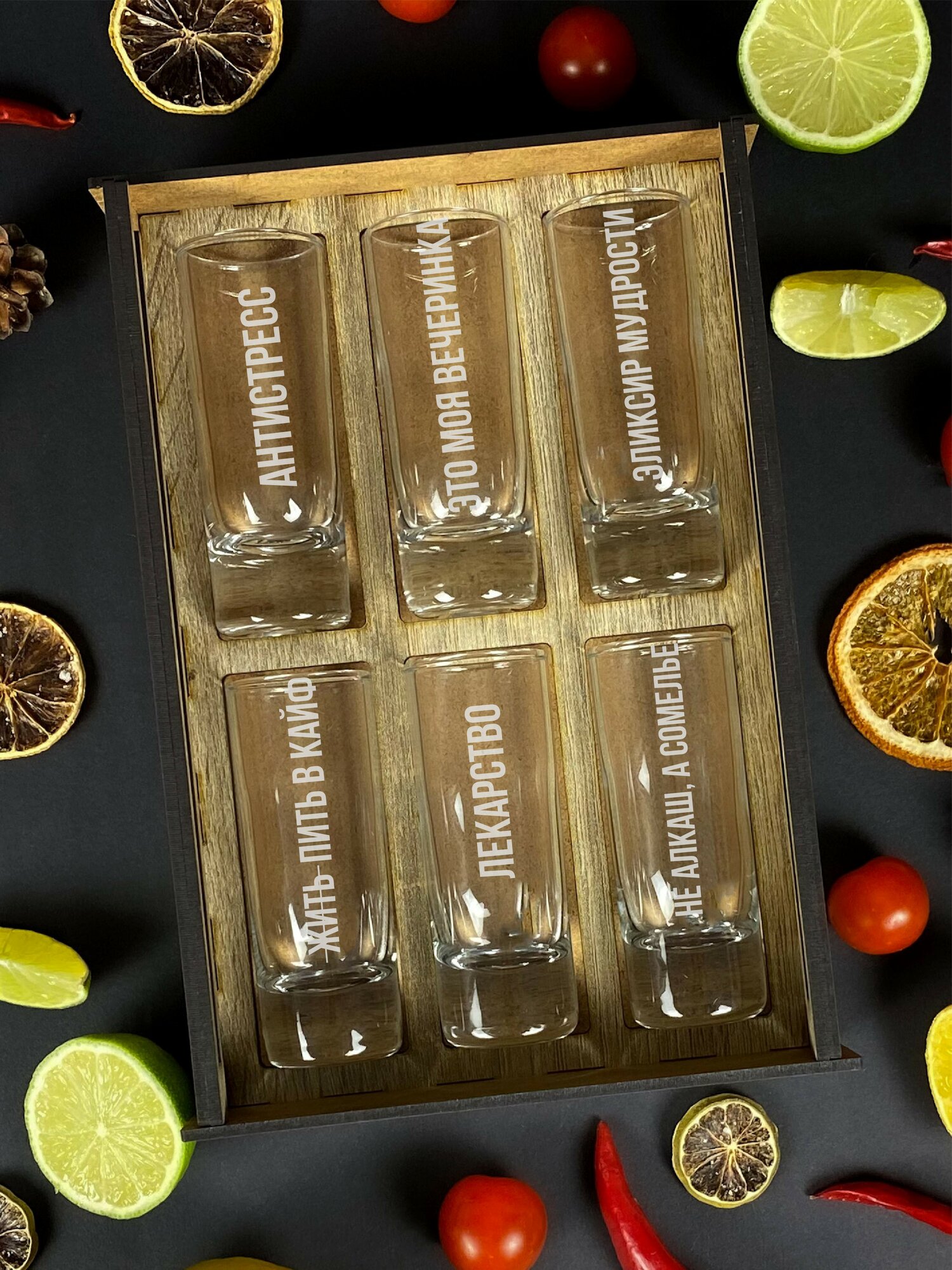 Подарочный набор стопок Бухляшечки. Рюмки для водки, коньяка, текилы в подарок мужчине и женщине на день рождения.