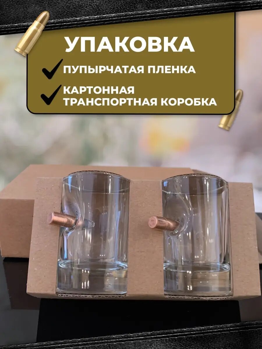 Купить Набор рюмок с пулей, 2 штуки, 50 мл, прямые, стекло, АБ Сувениры