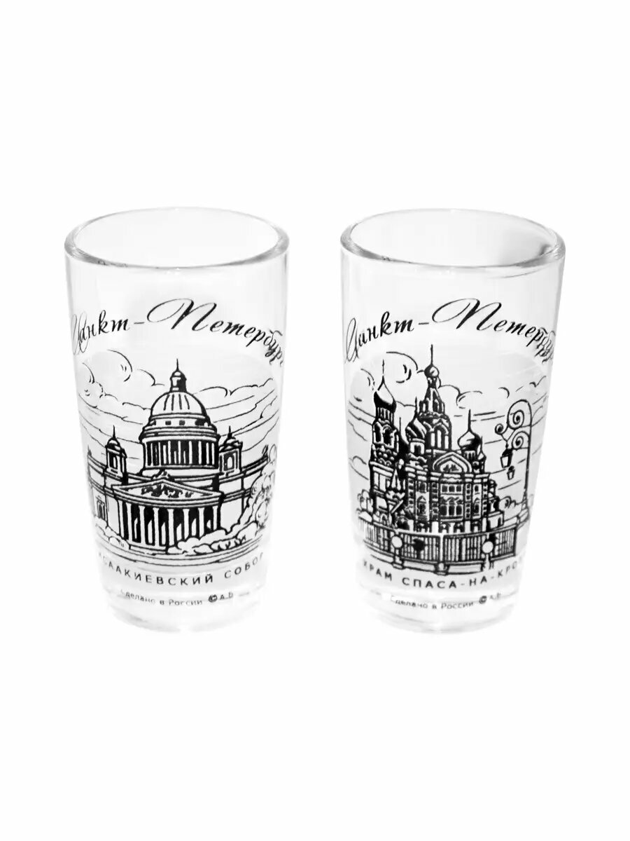 Стопки "Питер" из стекла, объем 50мл, набор из 2 штук , АБ Сувениры интересное: