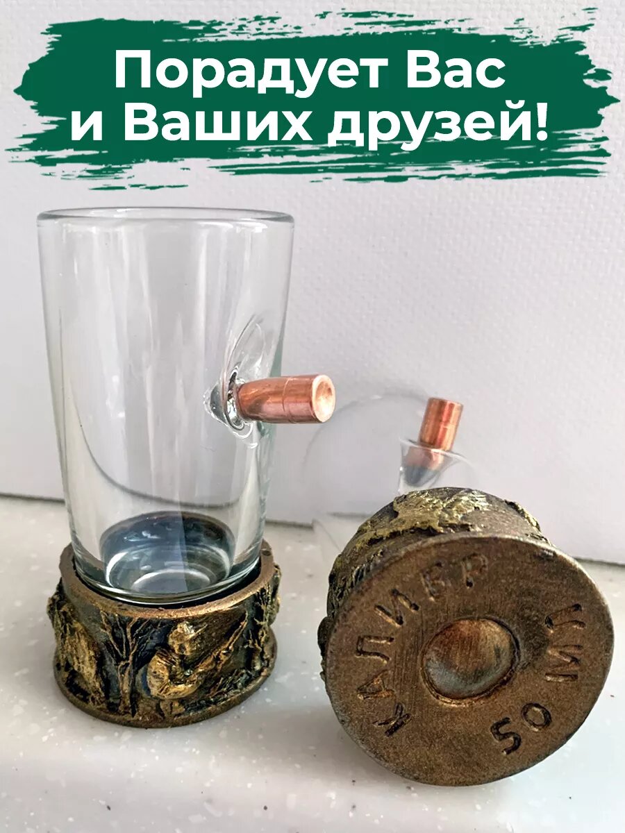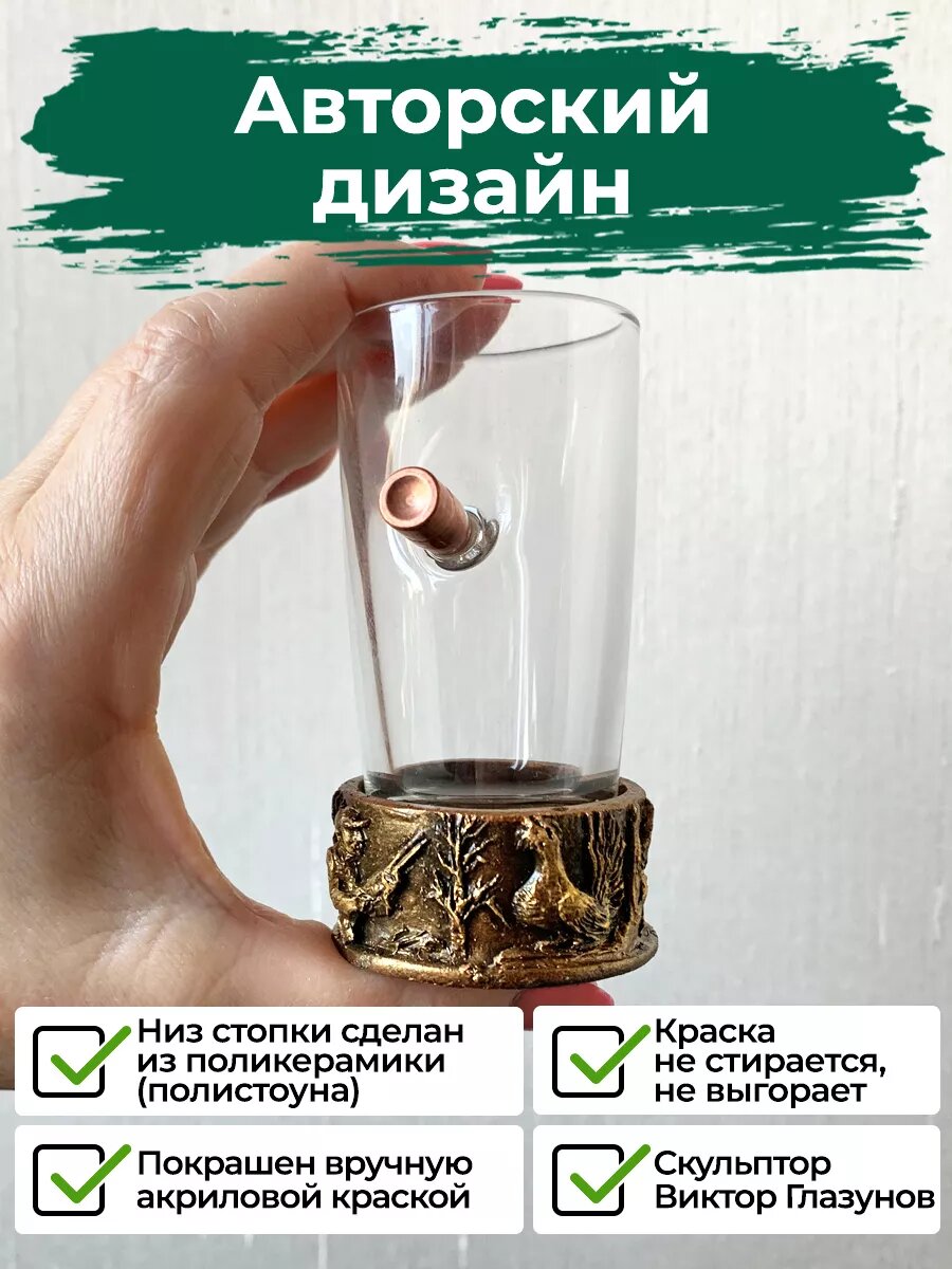 Купить Сувенирная рюмка с пулей, подарок охотнику, "Медведь и глухарь", 50 мл АБ Сувениры