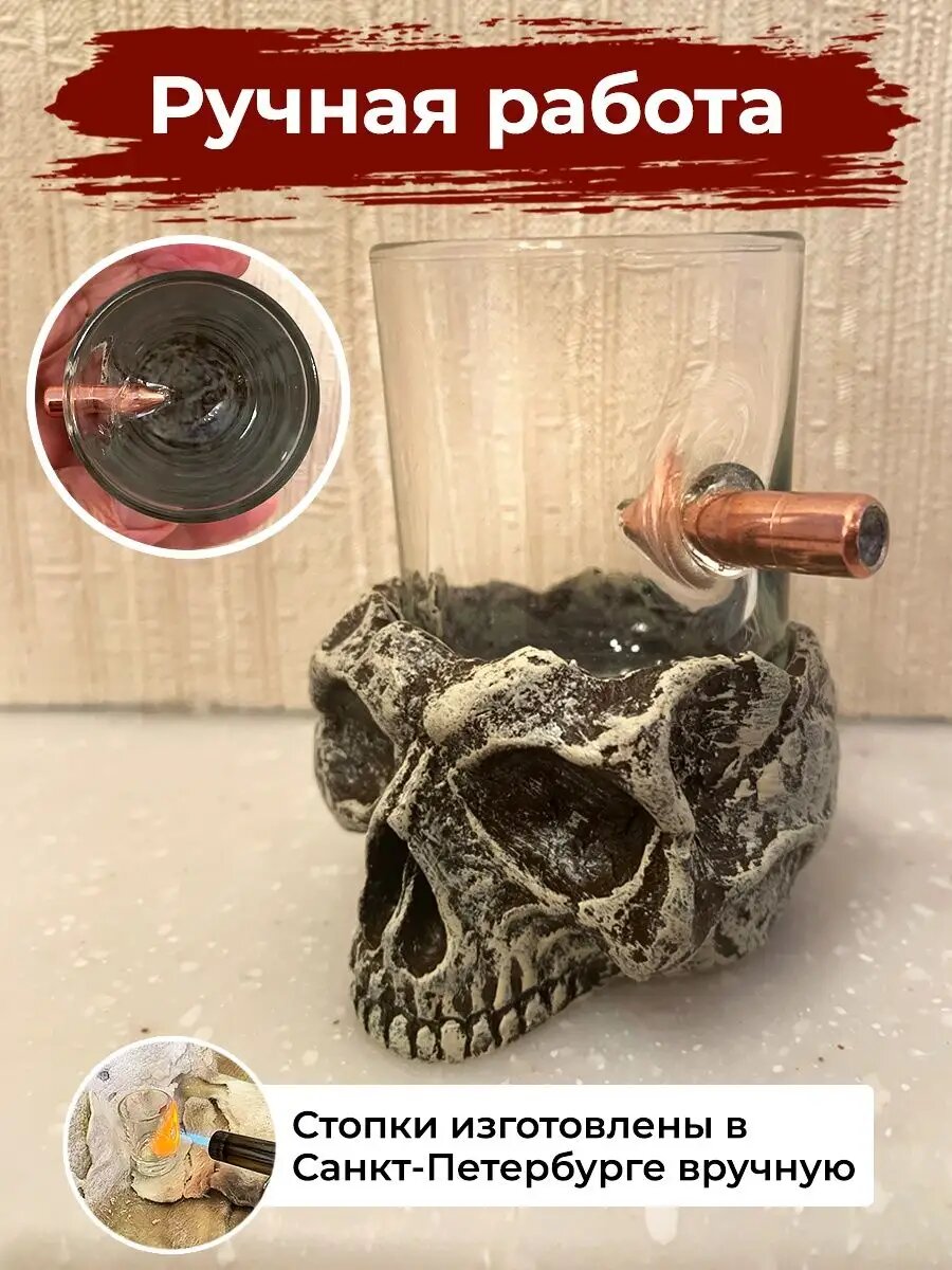 Купить Рюмка Череп с подставкой, с пулей, 50мл, стекло/полистоун, АБ Сувениры