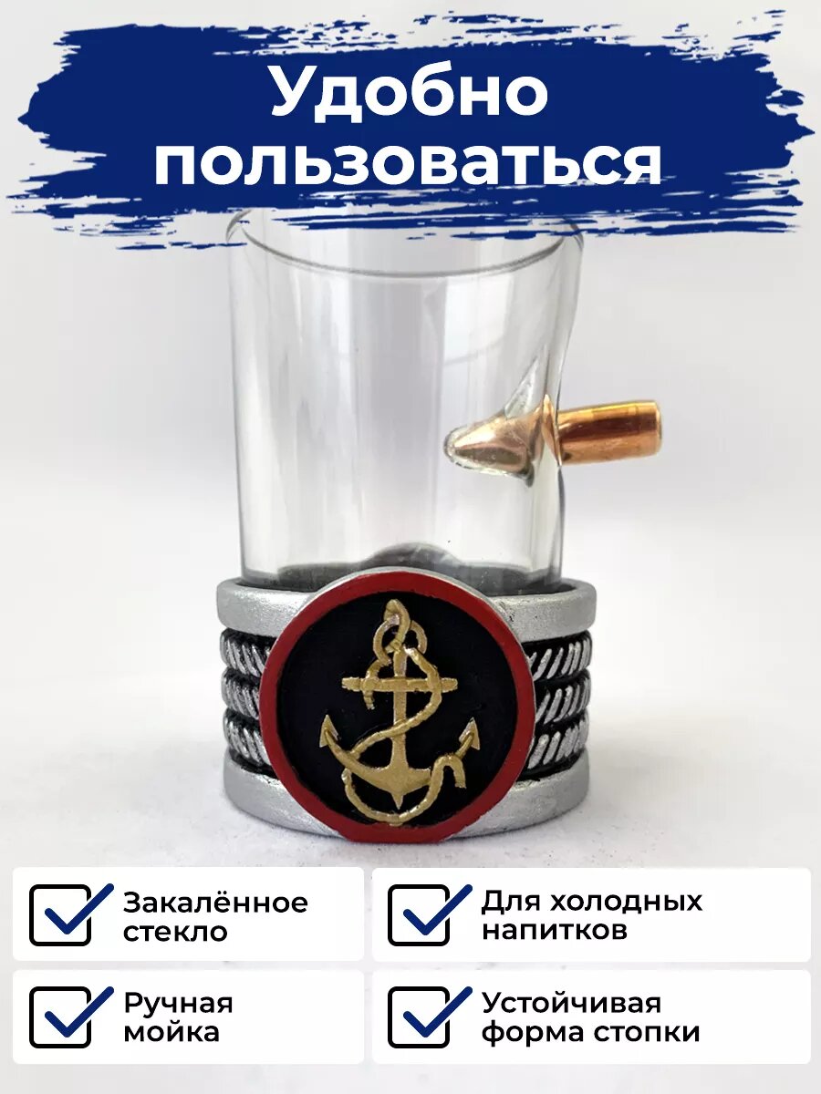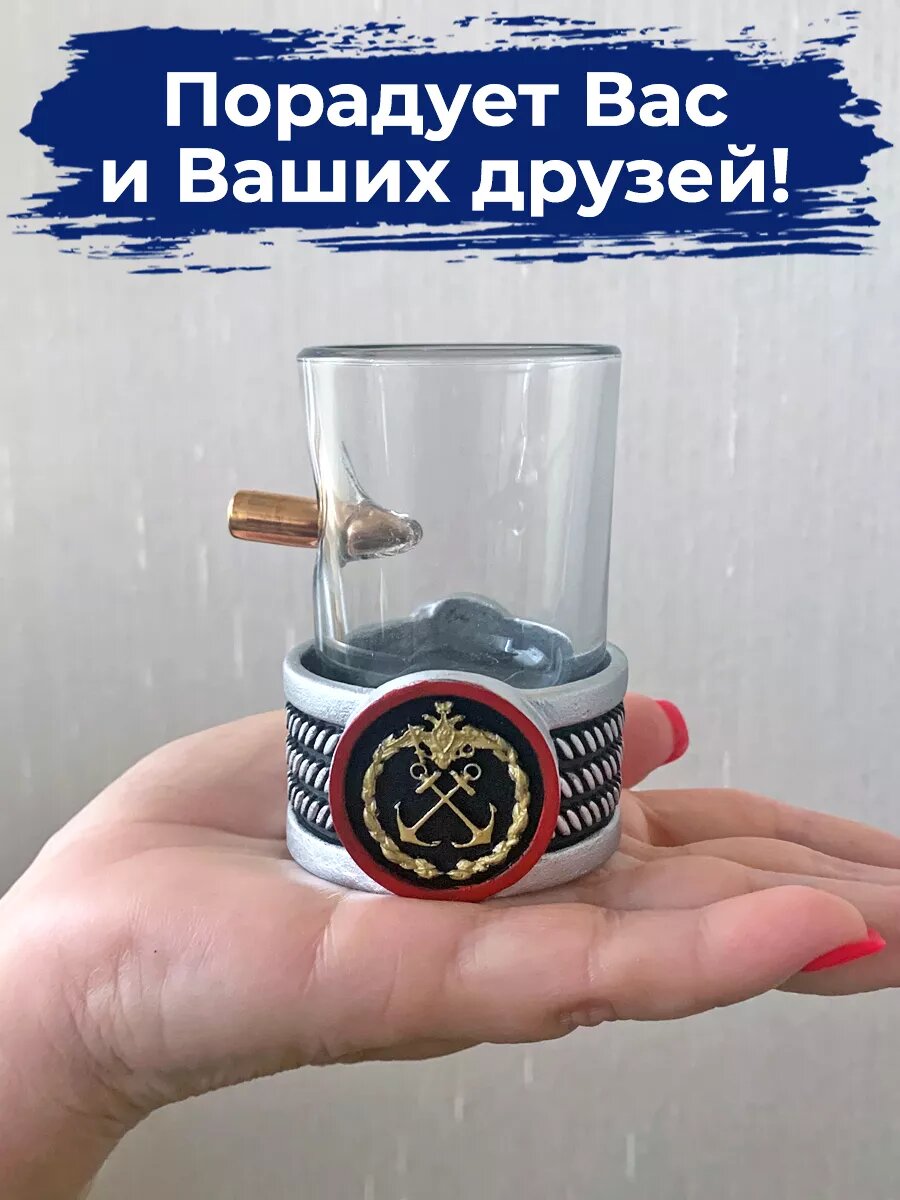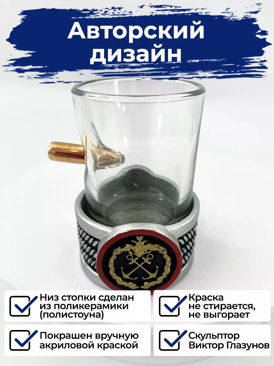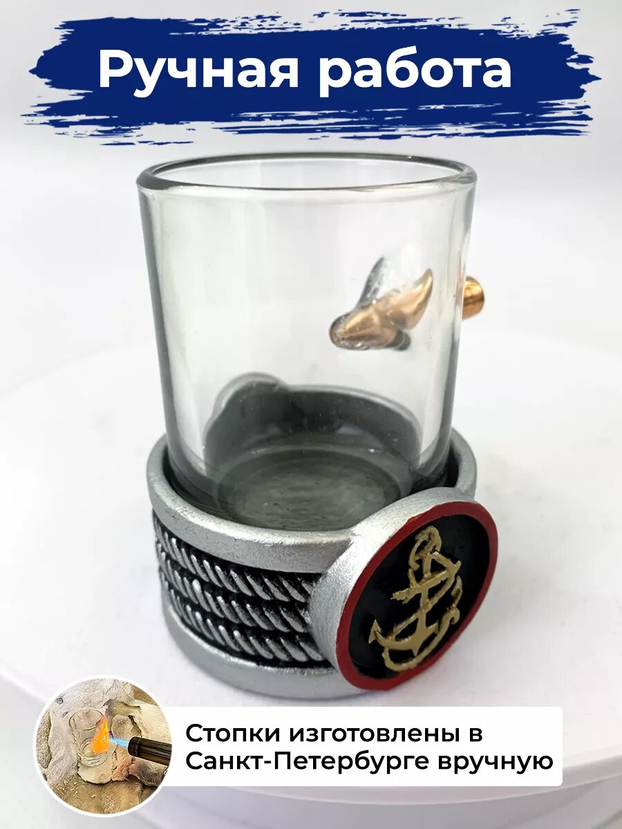 Стопка с пулей, ВМФ, 50 мл, стекло/полистоун, ручная работа, АБ Сувениры интересное: