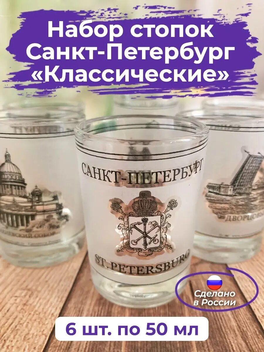 Стопки "Санкт-Петербург", набор 6 шт, стекло, матовые, объем 50 мл АБ "Сувениры" интересное: