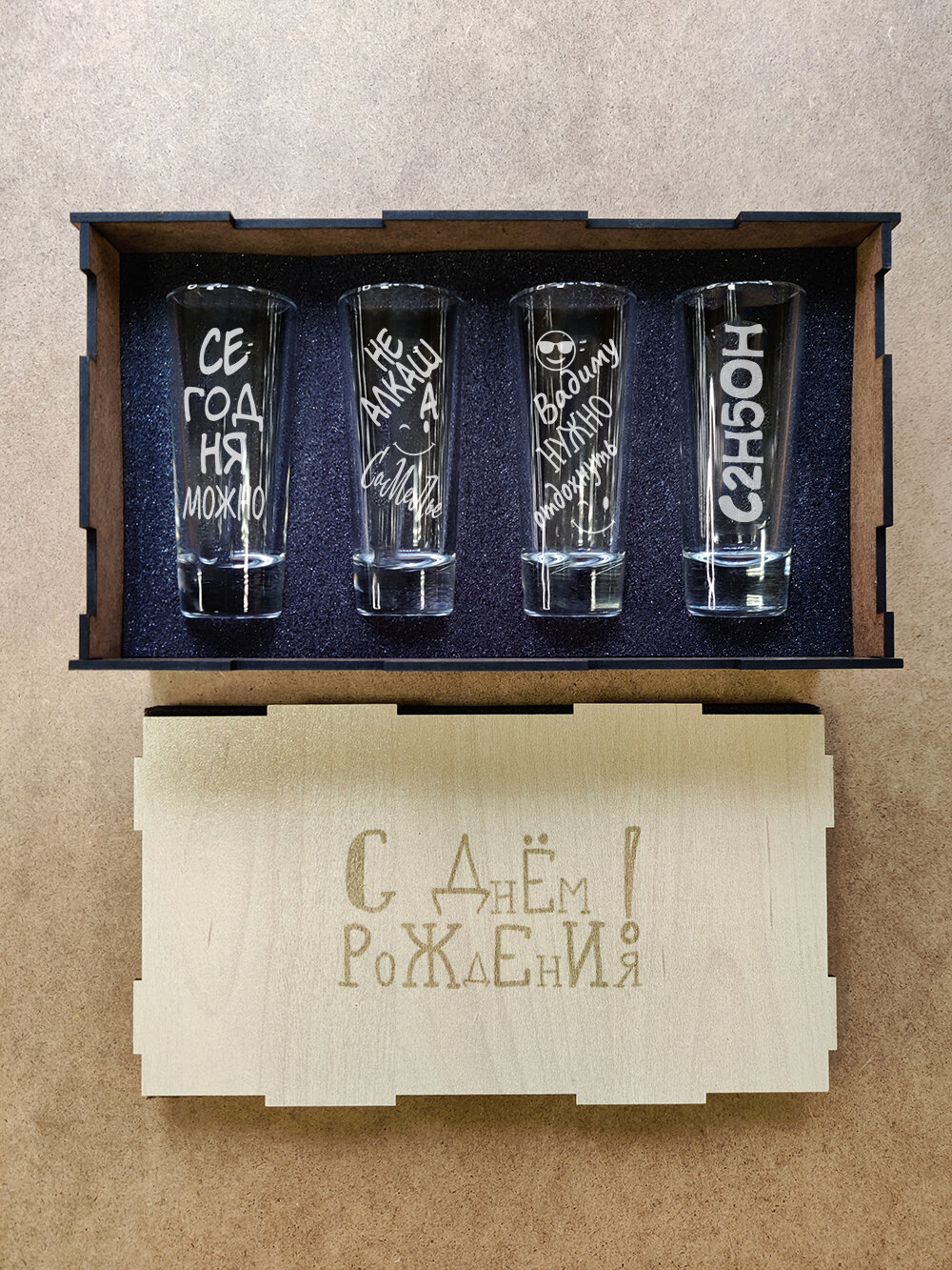 Подарочный набор стопок в коробке с гравировкой - ДР Макс