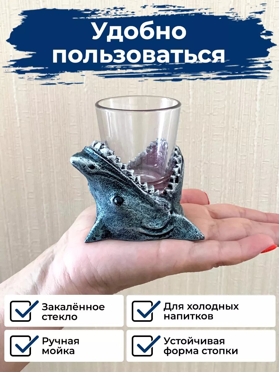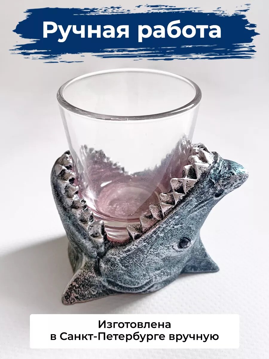 Рюмка Акула с подставкой, 50мл, стекло/полистоун, ручная роспись, АБ Сувениры интересное: