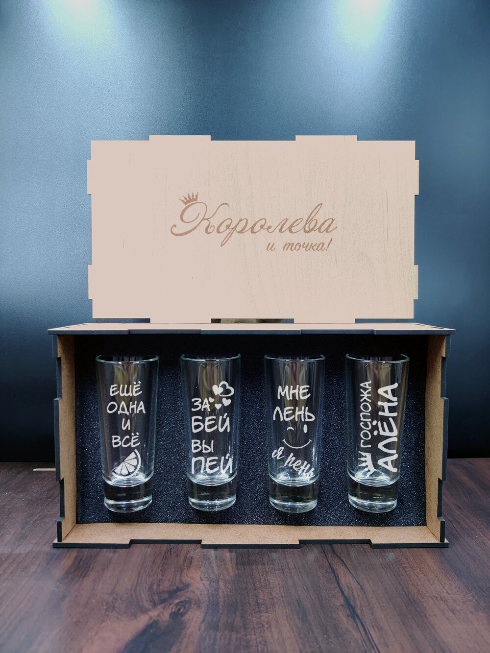 СохранитьПодарочный набор стопок в коробке с гравировкой - Королева Алёна интересное: