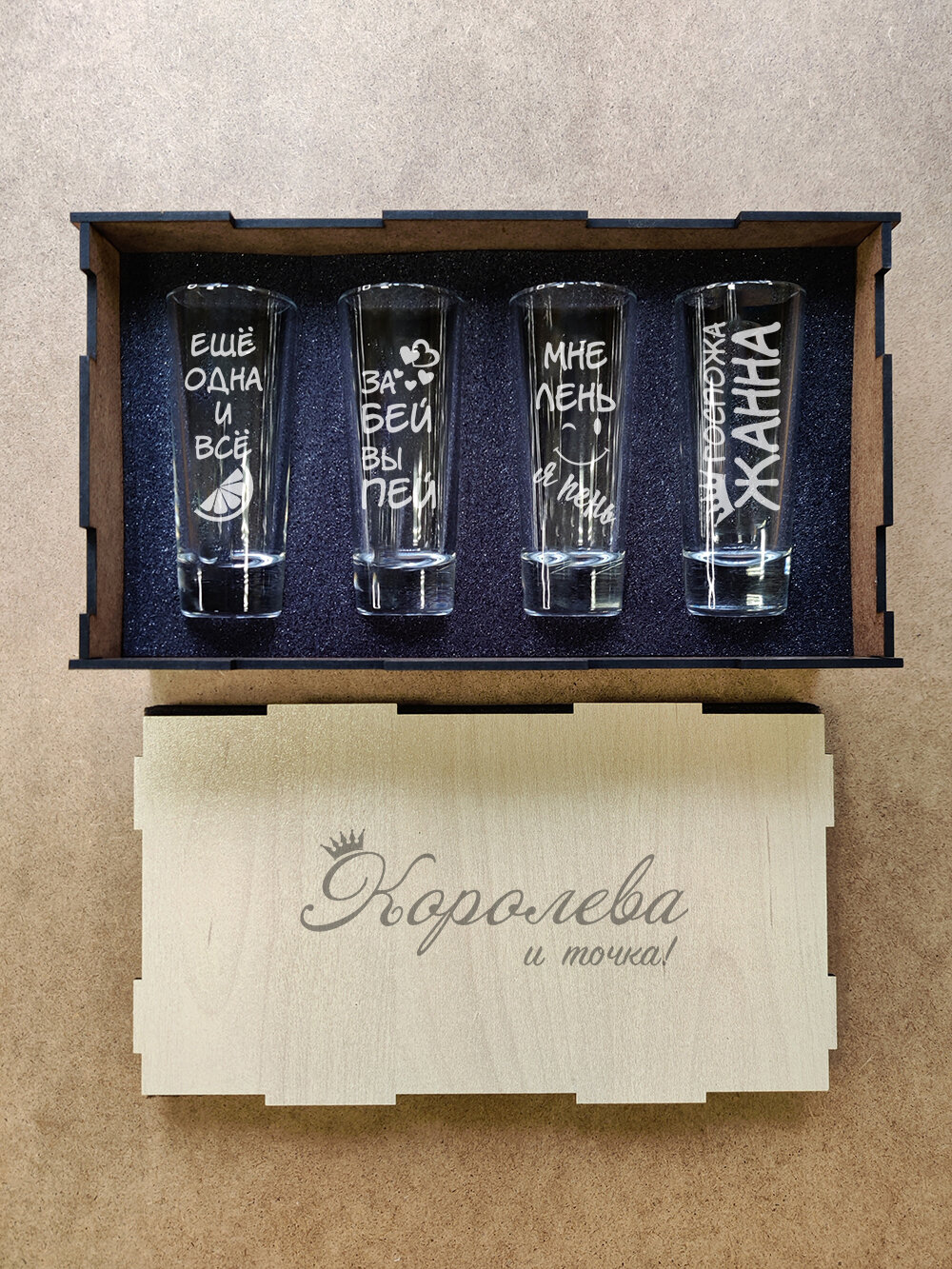Подарочный набор стопок в коробке с гравировкой - Королева Олеся