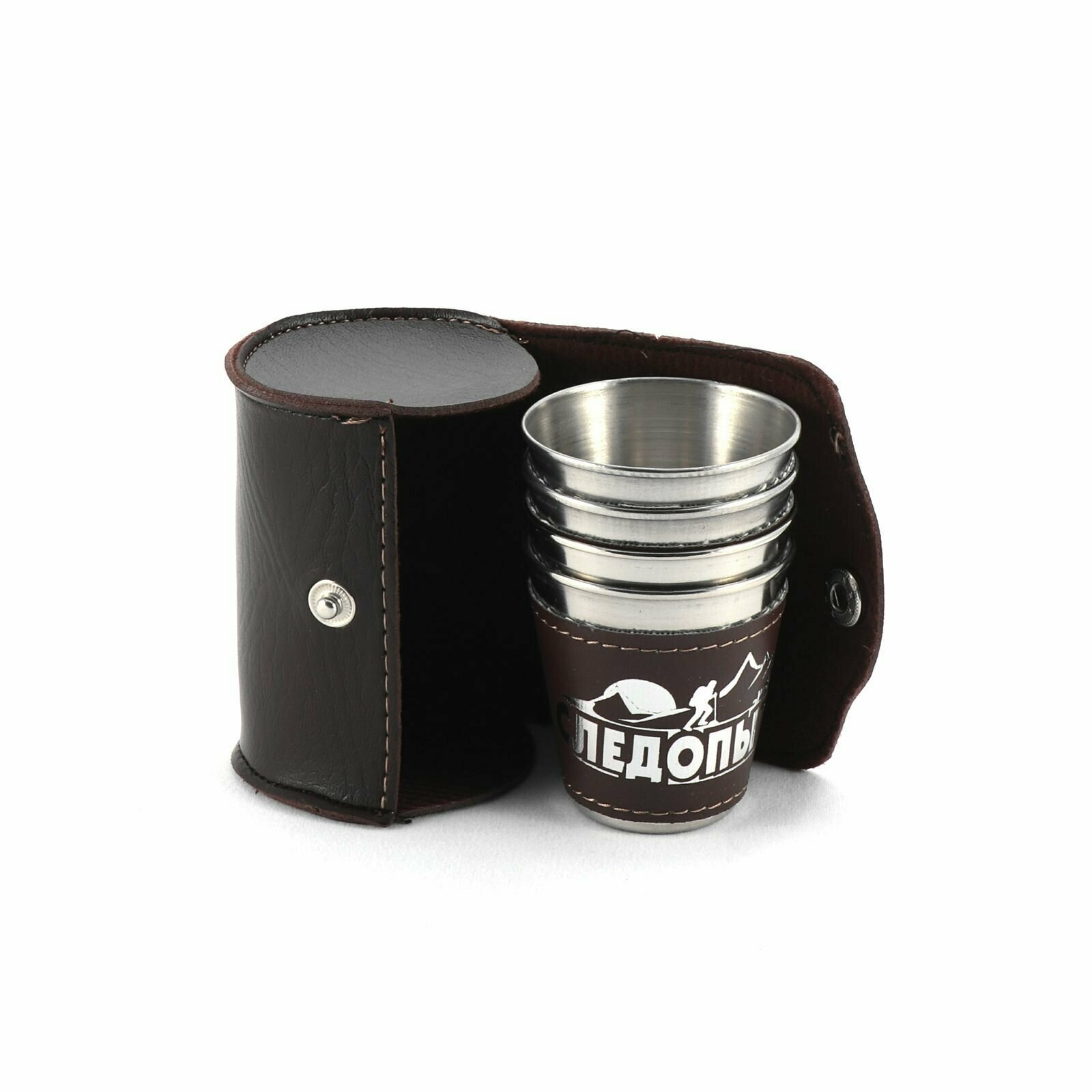 Купить Набор стопок «следопыт» 4х60 мл, в кожаной тубе, в дополнительном кожаном оплете