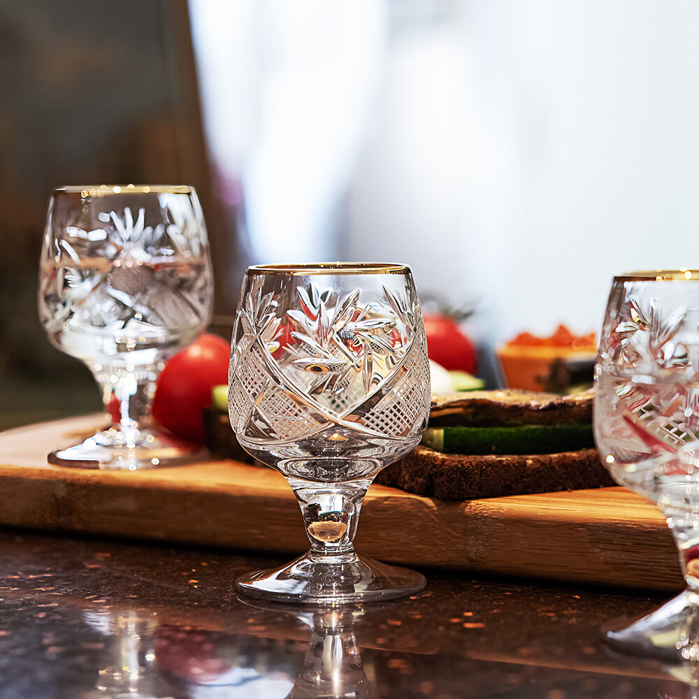 Хрустальные рюмки на ножке для водки/коньяка/ликера 50 мл, набор 6 шт, Неман 5290-1000/1, отводка золотом интересное: